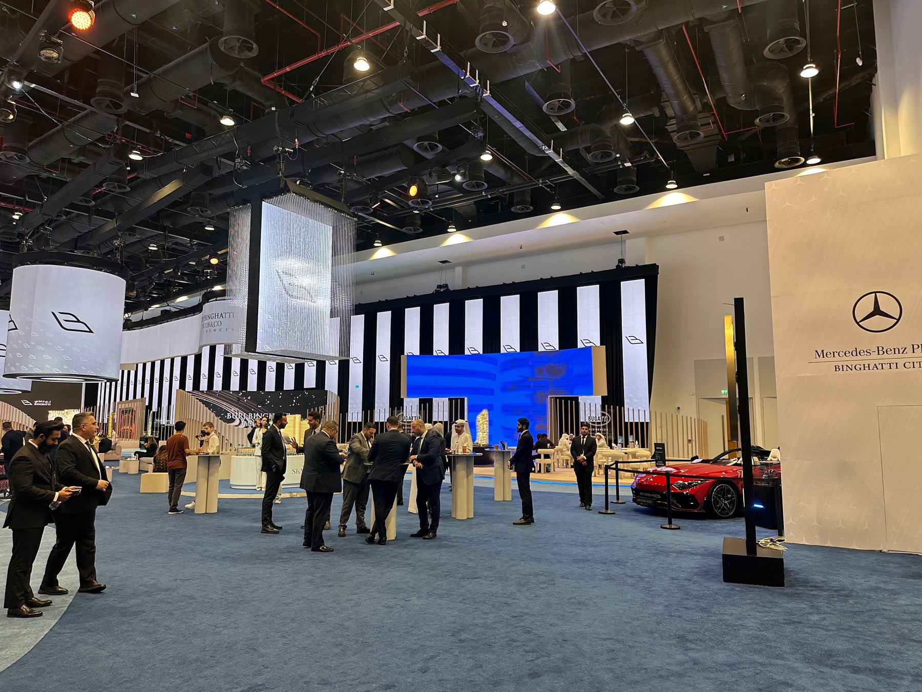 本イベントオフィスでは、ラマダン期間に合わせた特別なディナーイベントが開催され、多くの来場者を魅了。会場内には、同社が手がける最新プロジェクトの模型展示に加え、メルセデス・ベンツとのコラボレーション物件の紹介、さらには高級車の展示などが行われ、ビンガッティブランドの世界観を体験できる空間として注目を集めていました。
