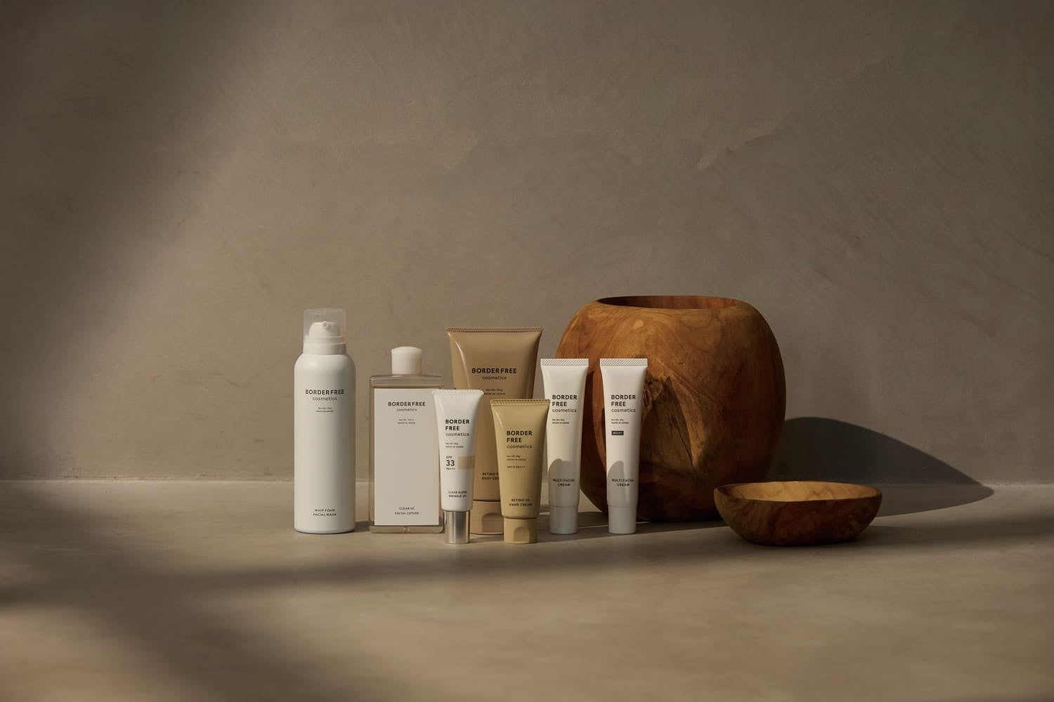 BORDER FREE cosmetics(ボーダーフリーコスメティクス)は、「未来の肌を育む成分設計」×「いまの心をゆるめる感覚設計」を重ねあわせ肌と心に寄り添うスキンケアブランドです。