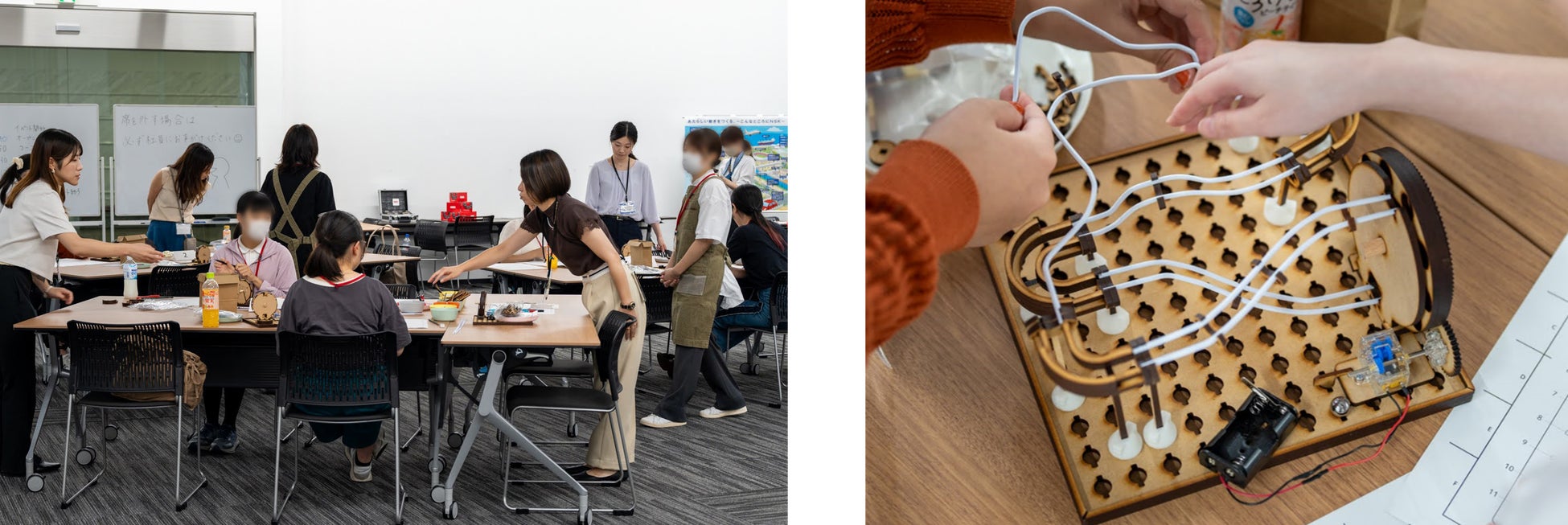 ●対面形式ではマーブルマシン組立体験、オンライン形式ではベアリング組立体験などを実施