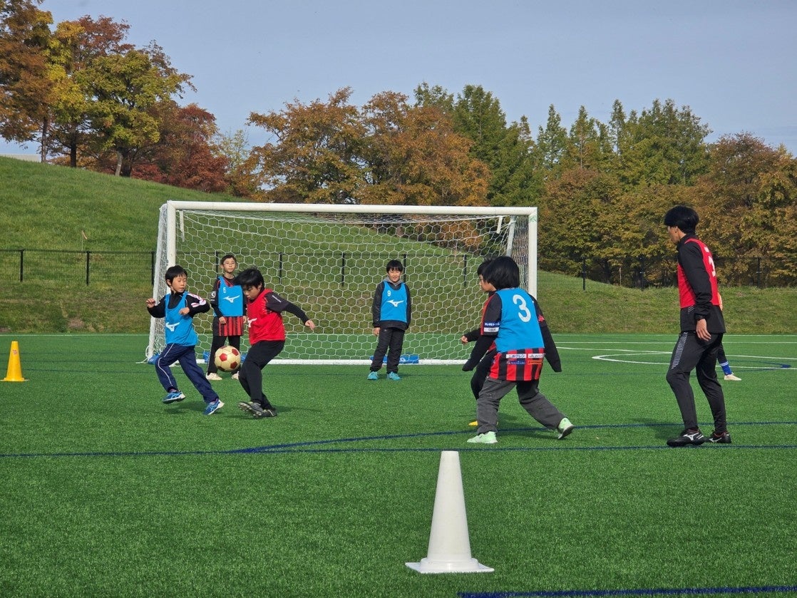 サッカー教室では、ドリブルやパスといった基本練習から、より実践的なミニゲームまで、石川さんやスクールコーチから直接指導を受けました。「もっとボールをよく見て!」「ナイスプレー!」といった熱のこもった声がグラウンドに響き渡り、子どもたちは目を輝かせながら、一つでも多くの技術を吸収しようと懸命にボールを追いかけていました。