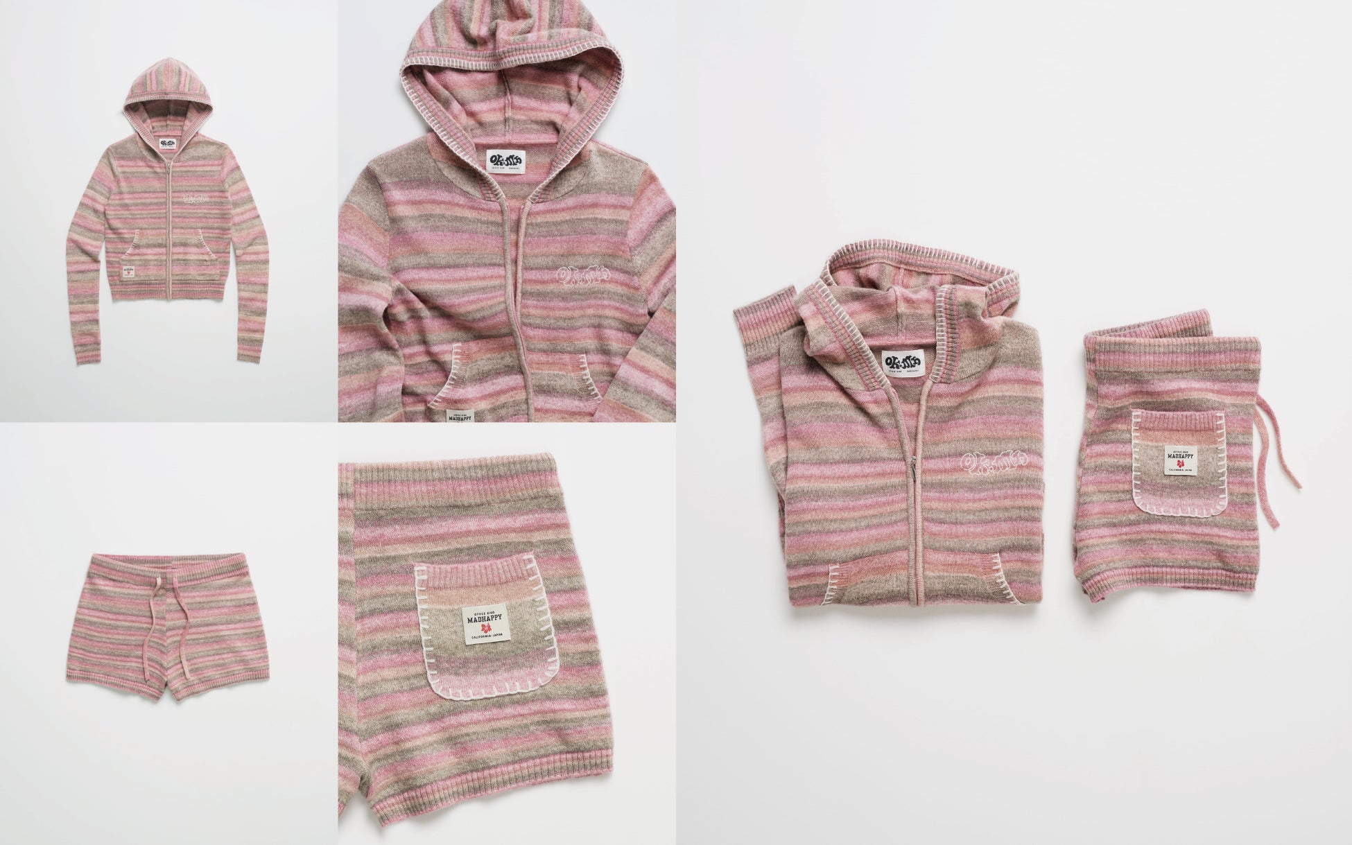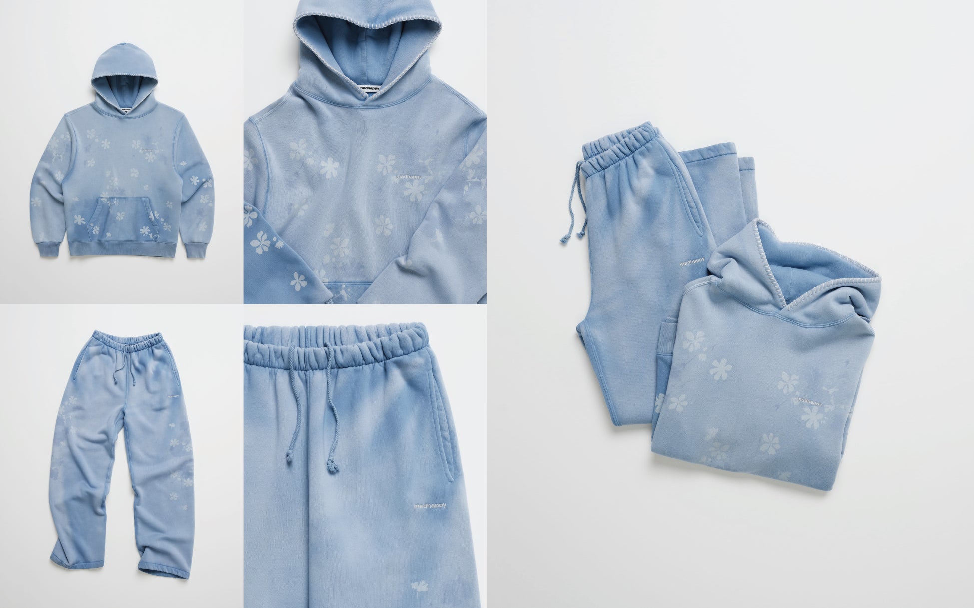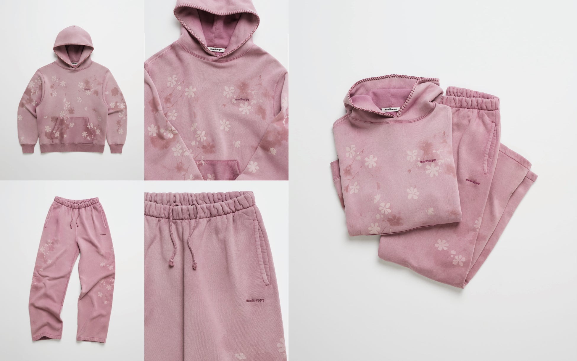 本コレクションでは、Madhappyならではの温かみのあるパステルカラーと柔らかな素材感をベースに、Office Kiko特有のボヘミアンフローラルプリントや刺繍を繊細に散りばめました。