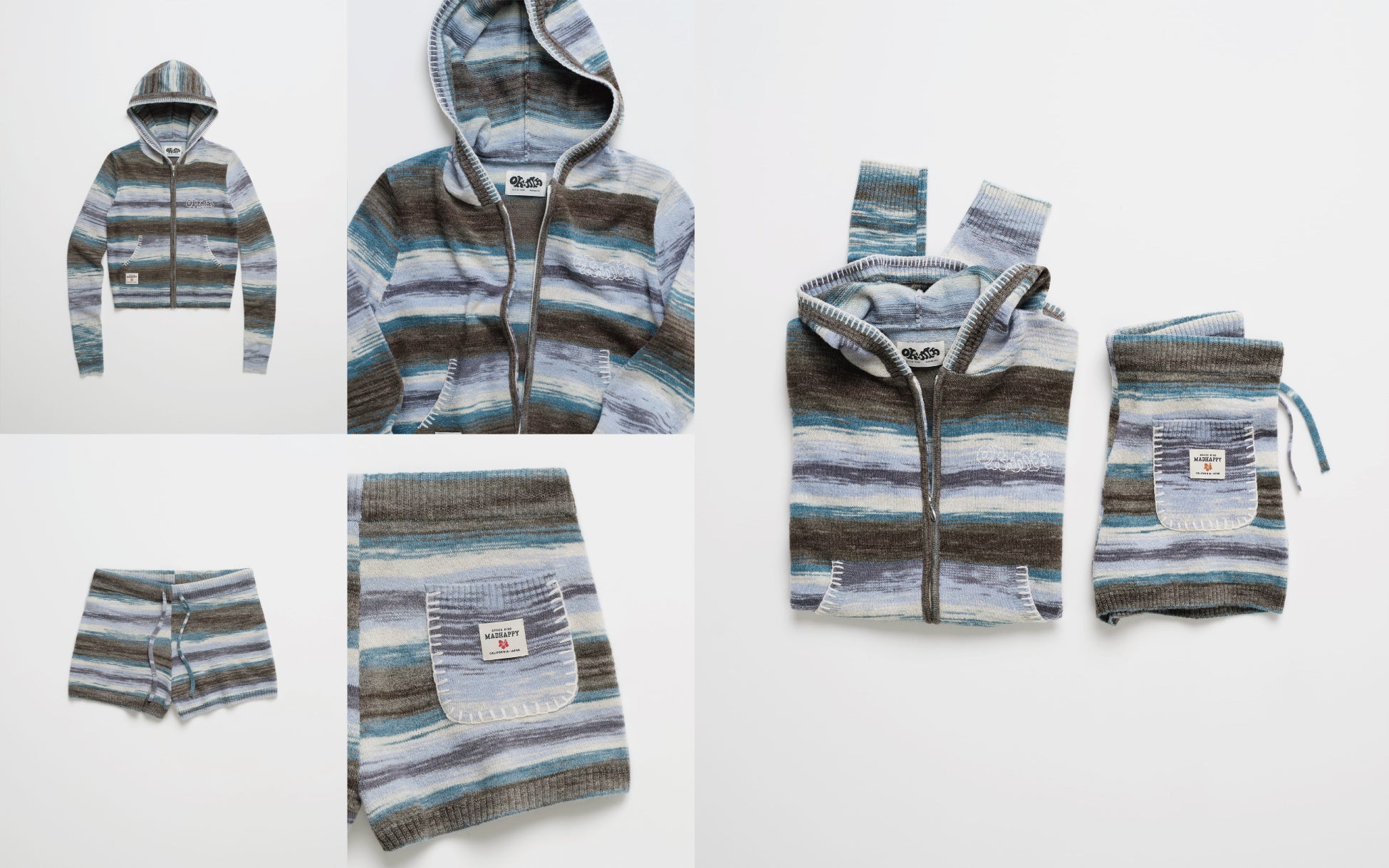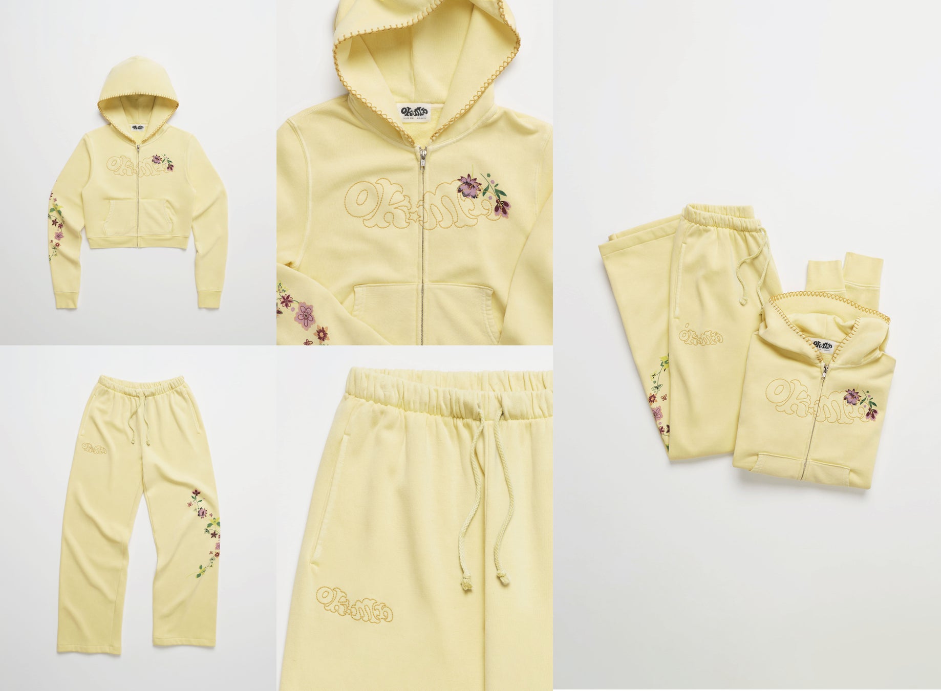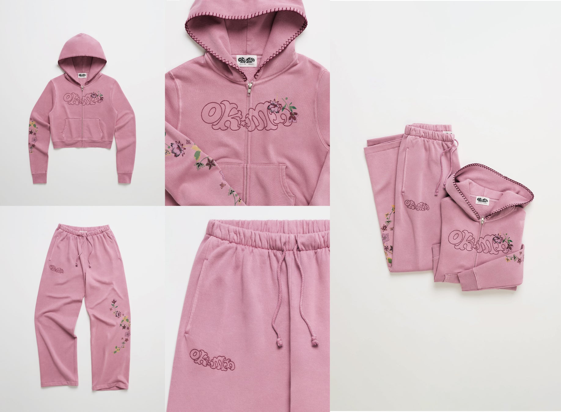 本コレクションでは、Madhappyならではの温かみのあるパステルカラーと柔らかな素材感をベースに、Office Kiko特有のボヘミアンフローラルプリントや刺繍を繊細に散りばめました。