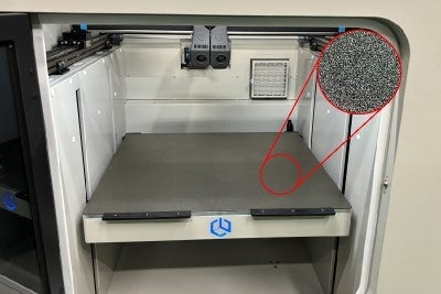 最大100℃まで昇温することができるヒートベッド機能を搭載し、熱収縮によるモデルの反りを抑制し、しっかりとテーブルに定着させます。さらに、テーブルの材質・構造にもこだわり、マグネットが埋め込まれたアルミ製テーブル+PEIパウダコーティングされたスチール製ビルドプレートを採用しています。これらによって短時間で目的の温度まで昇温できる優れた熱伝導性と平坦性を実現しています。