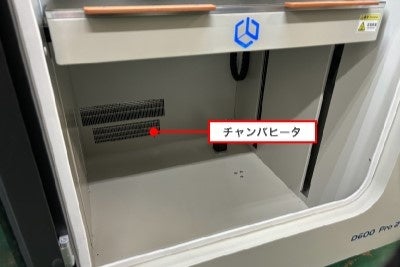 「D600 Pro2」は材料庫内を乾燥させるためのヒータを搭載し、材料庫内を最大70℃まで自由に昇温することができます。