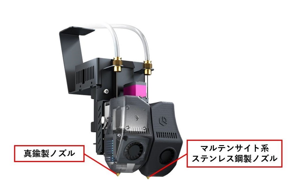 D600 Pro2ではプリントノズルとして真鍮製とマルテンサイト系ステンレス鋼製の2種類が標準搭載されています。
