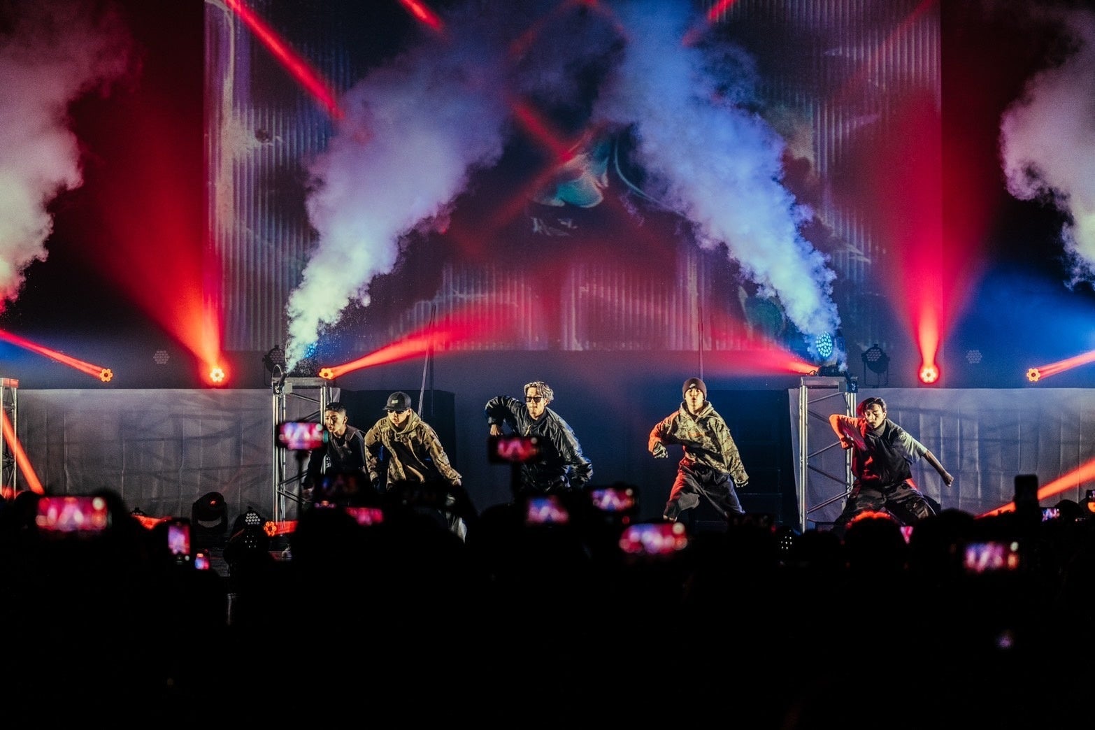 アクロバットも取り入れたスピード感のあるスキルフルなダンスで会場をロックし、ひとりひとりにフォーカスを当てた動画を背に、それぞれが師として仰ぐダンサーや、親交の深いダンサーなど、豪華なダンサー達が続々とステージに登場し、会場のボルテージは一気に最高潮となりました。