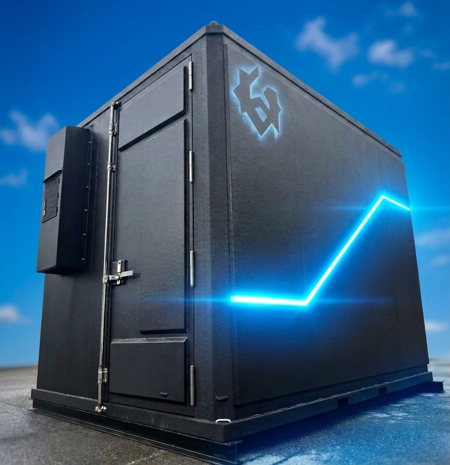 AI・GPUサーバーやストレージ等をいかなる状況下でも保護し、運用を継続させるシェルタータイプのコンテナ型データセンター。「Japan IT Week 春」(2026/4/8~10)にて実機を先行展示