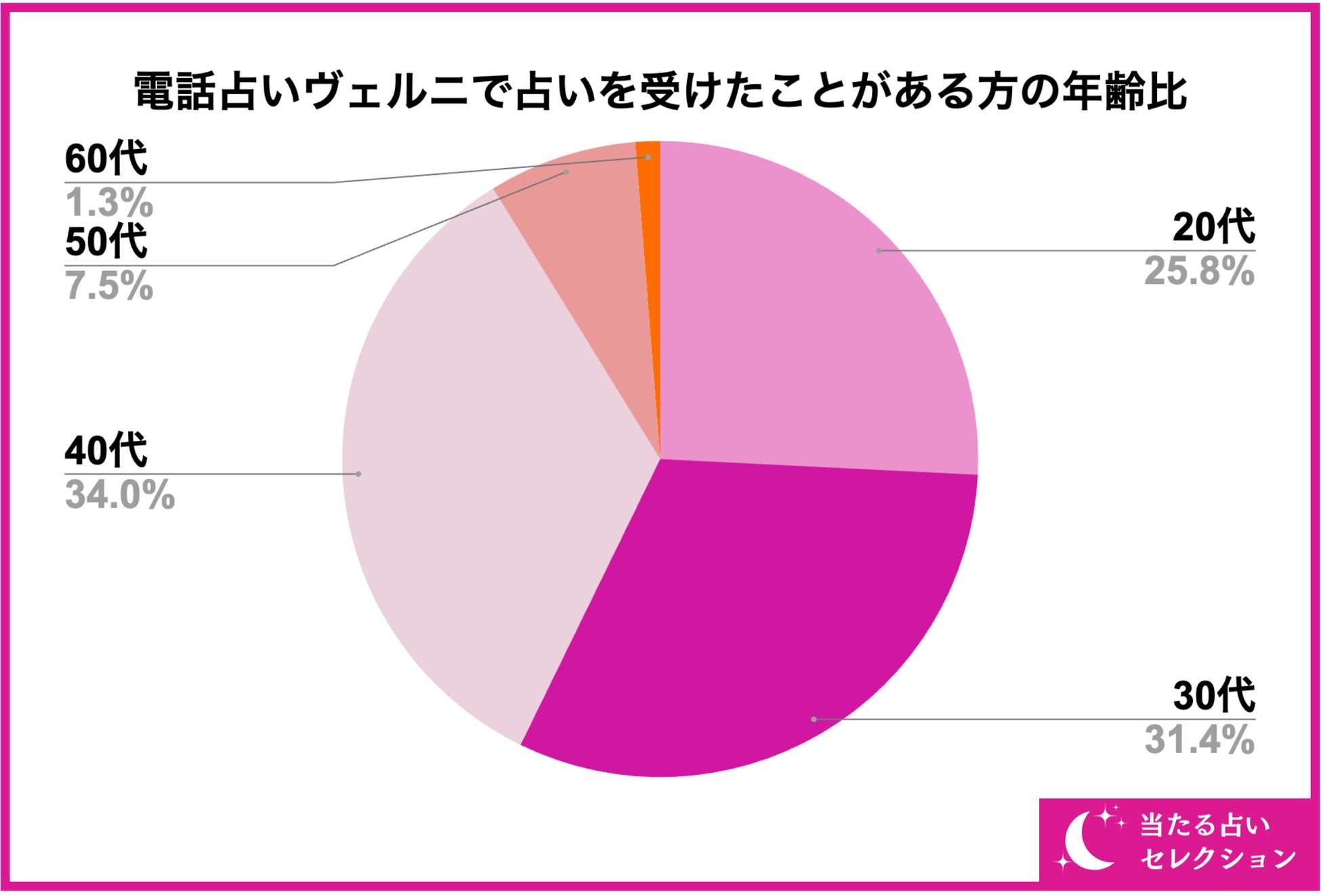 電話占いヴェルニで占いを受けたことがある方の年齢比について