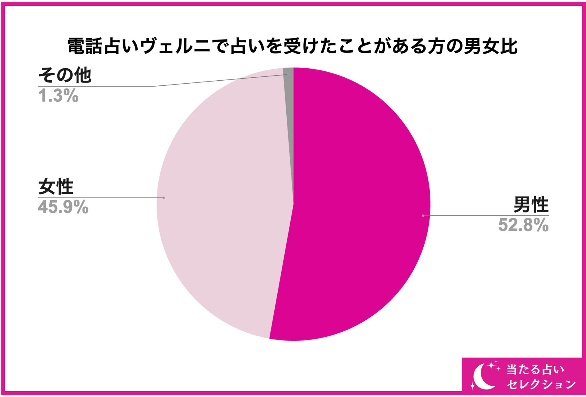 電話占いヴェルニで占いを受けたことがある方の男女比について