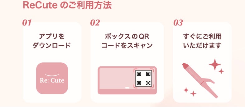 「かわいいを、巻き戻そう。」 をコンセプトに、アプリ1つでいつでもヘアアイロンをレンタルできるサービスとして展開しています。