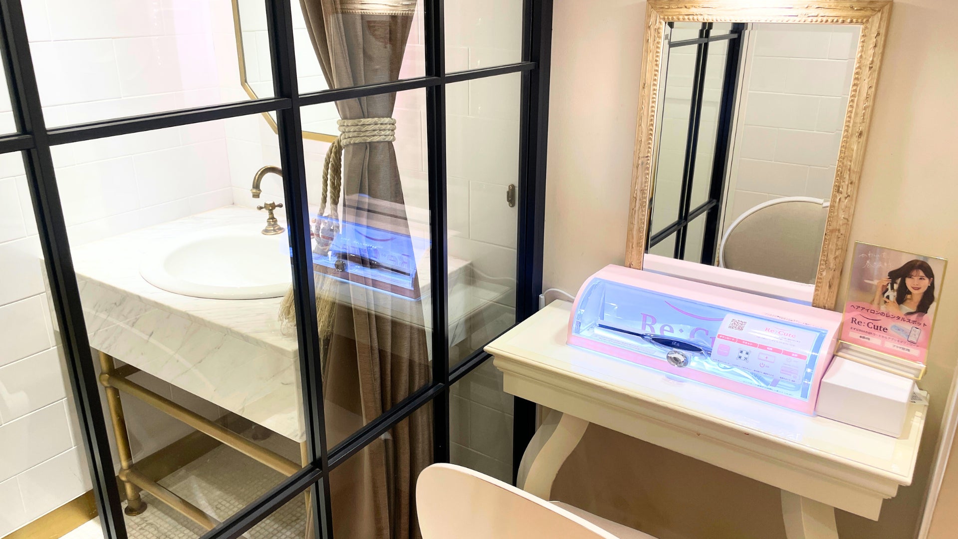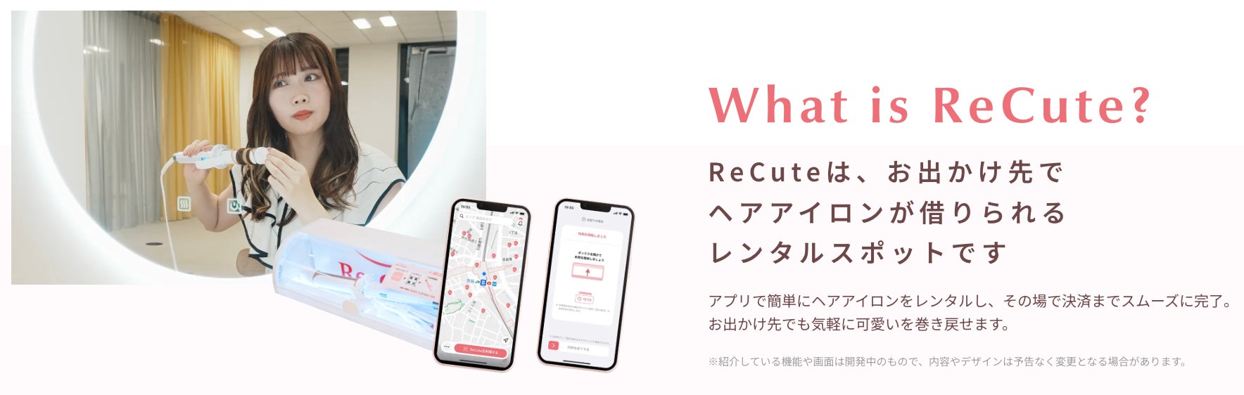 ReCuteはこの課題に対し、駅や商業施設などのお化粧室や遊休スペースでヘアアイロンをレンタルできるシェアリングサービス(レンタルスポット) を展開しています。
