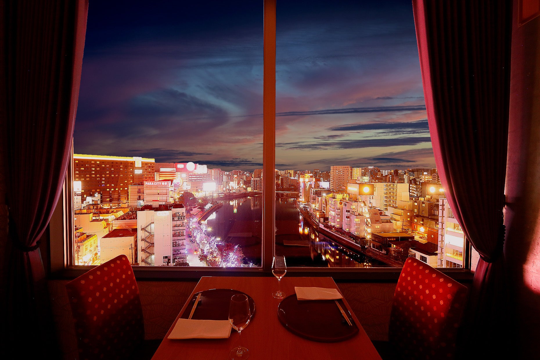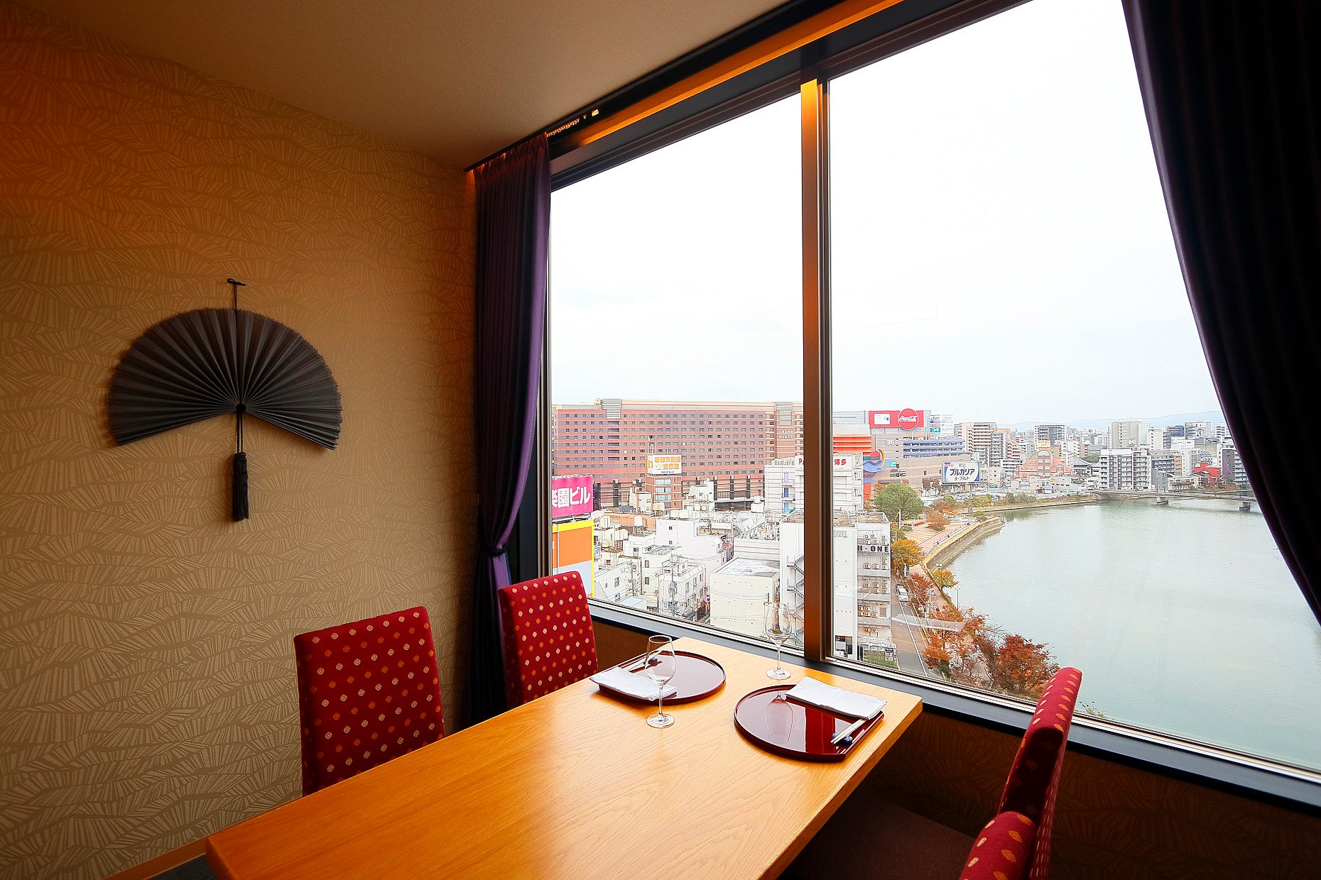 店内はすべて完全個室となっており、プライベートなひとときを大切にしたいシーンや、ご婚礼・ご家族のお祝いなど格式高いお集まりやご接待の御席としても最適です。福岡のシンボルともいえる那珂川や博多市内の眺望は、地元の方々のみならず県外からのお客様にも、思い出深いひとときを演出します。ゆったりとした空間で、心安らぐひとときを老舗のおもてなしとともにお過ごしください。