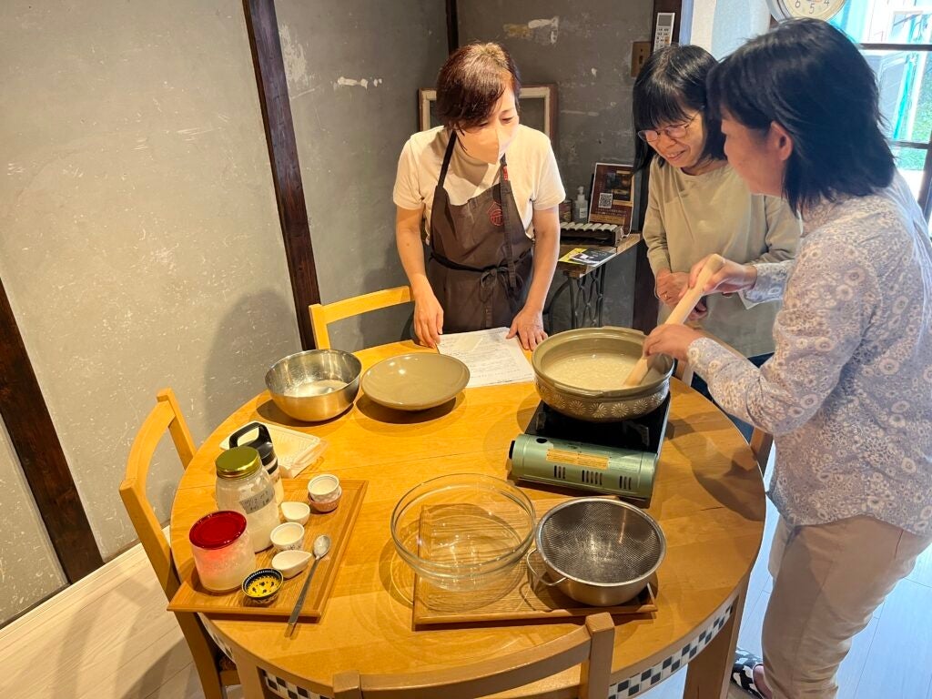 米とサツマイモから作る発酵飲料「ミキ」は、甘酒やヨーグルトのような味わいで、乳酸菌が豊富な腸活ドリンク。乳製品が苦手な方やお子さまにも飲みやすく、調味料やデザートづくりにも活用できます。体験ではミキを作り、瓶詰めして持ち帰りが可能。体験後は、ミキや麹を使った特製ランチも楽しめます。