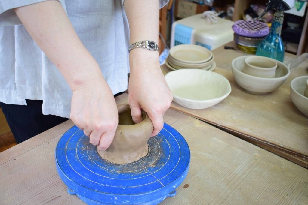 信楽の土や、希望により東大阪の土を使って、食器や花器などを自由に制作できる陶芸体験です。お子さまからご年配の方まで、年齢や経験を問わず参加可能。土の感触を楽しみながら、自分だけの作品づくりをお楽しみいただけます。