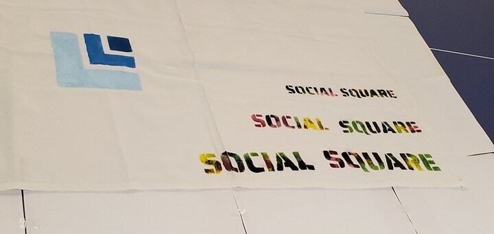 小さなお子様にも参加していただけるウォールペイント体験をご用意しております。当法人ソーシャルスクエアのロゴが描かれた大きな板に、様々な方法で色を付けていただき、皆さんで世界に1つだけのアートを作ります。