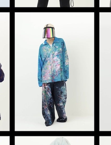 尚、この作品制作のための衣装はアパレルブランド “Talking about the abstraction”様によりご提供いただいたもの。そもそもこの服は、MUSASHIが創作活動の中でいつも服にこんな風に絵具をつけていることから着想されデザイン、商品化されたものだというから感慨深い(すでに当商品は完売し、再販の予定はなし)。個展ではこちらの衣装も実物が展示される予定だ。