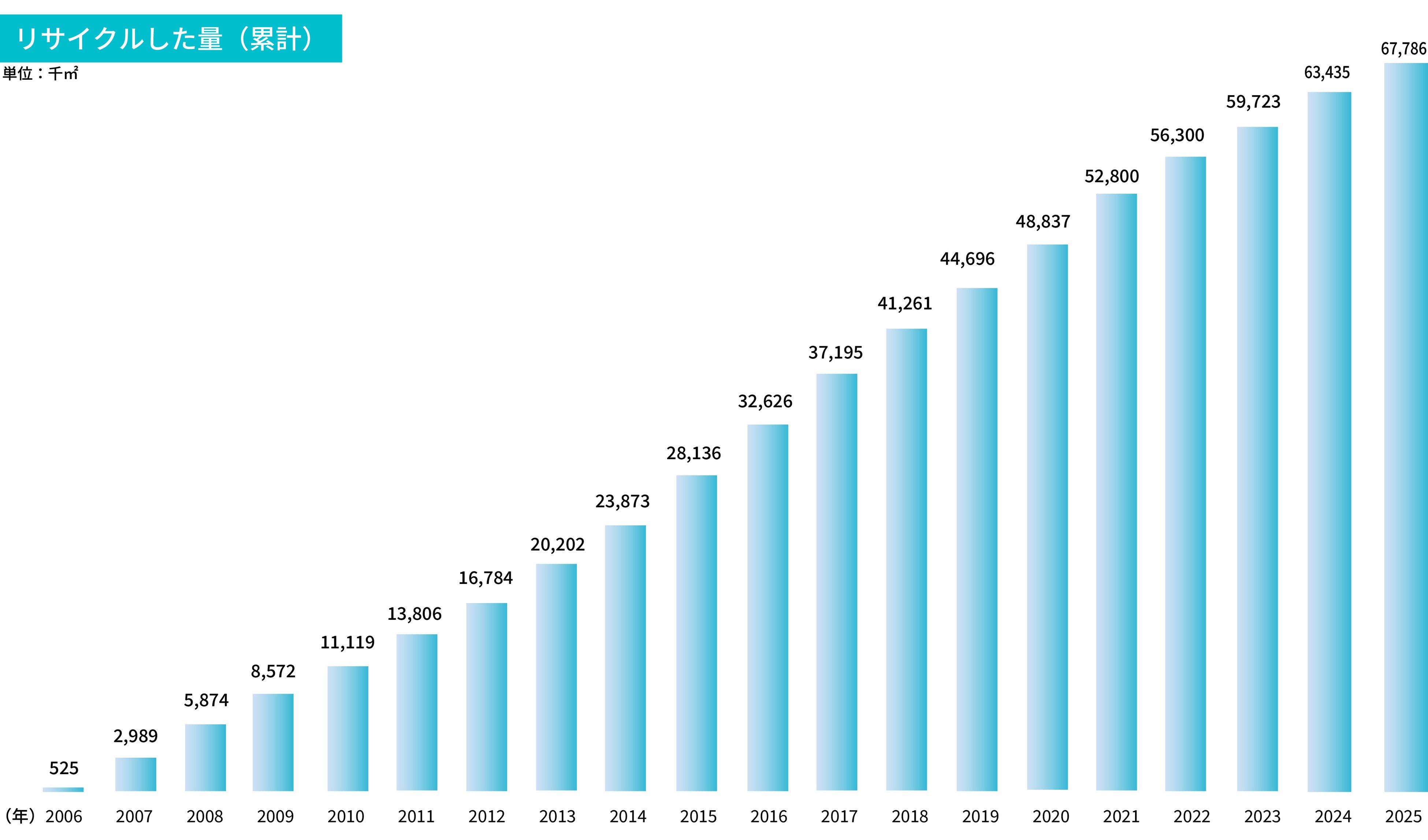近年は、社会全体でサステナビリティ経営やSDGs施策が進む中、オフィス改装などから発生する廃棄物の環境負荷低減を求める声が高まり、タイルカーペットのリサイクル需要も増加しています。これらの取り組みの広がりにより、2025年までの累計再資源化量は6,778万㎡(東京ドーム約1,450個分)に達しました。