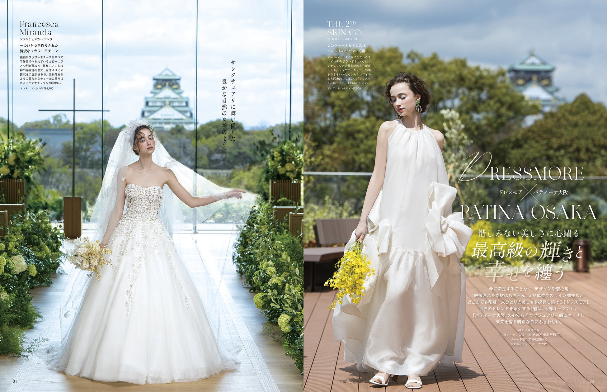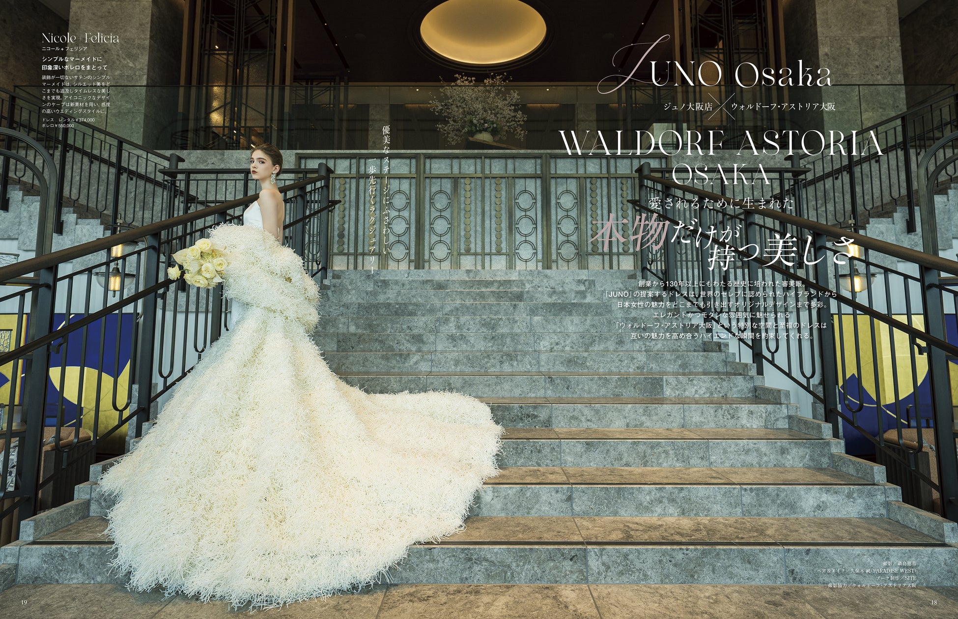 「大阪・関西万博」で注目を集める大阪に日本初上陸、開業したばかりの2つのラグジュアリーホテル【ウォルドーフ・アストリア大阪】と【パティーナ大阪】を舞台に、大阪を拠点に展開する人気ショップ【JUNO 大阪店】と【DRESSMORE】のバイヤーがセレクトした最旬インポートドレス&国内ドレスを完全撮り下ろしで巻頭ビジュアル企画として特集しました。