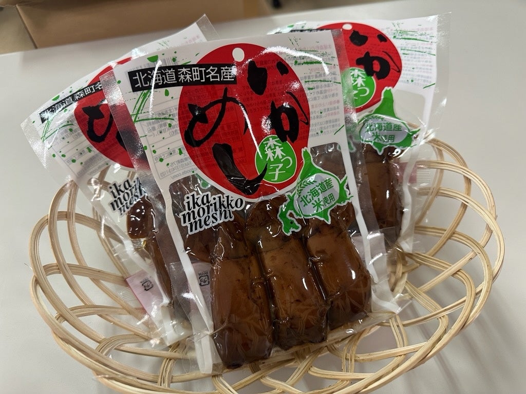 北海道物産展などで人気の、お土産に最適な真空パックのいかめしです。