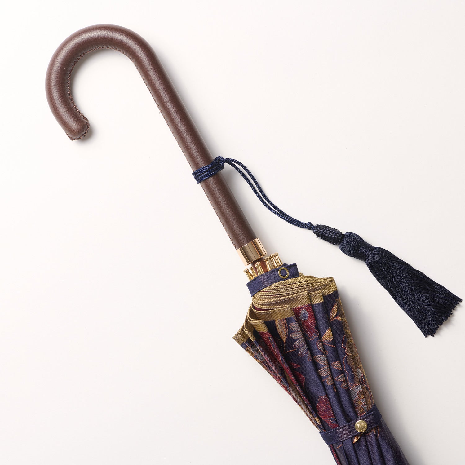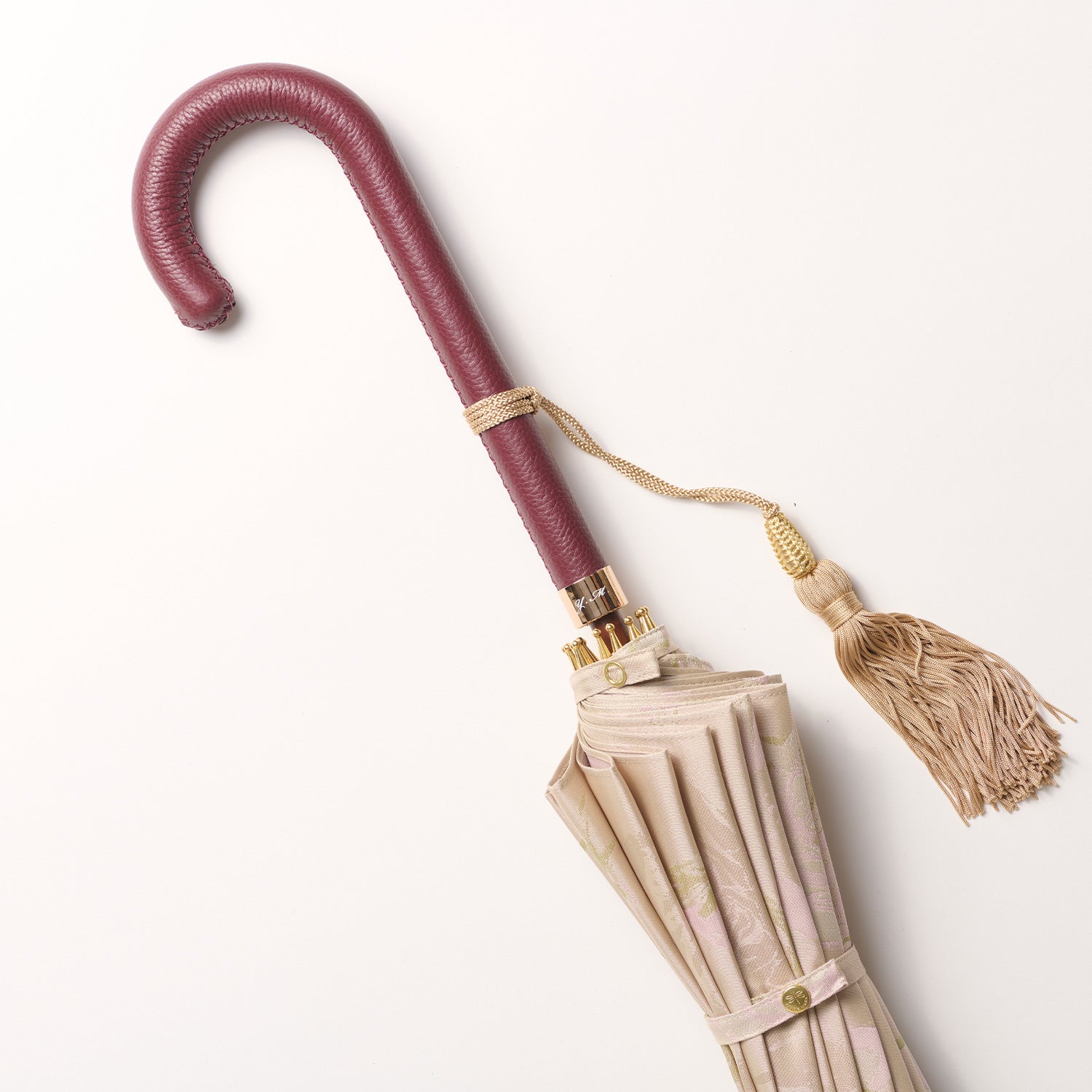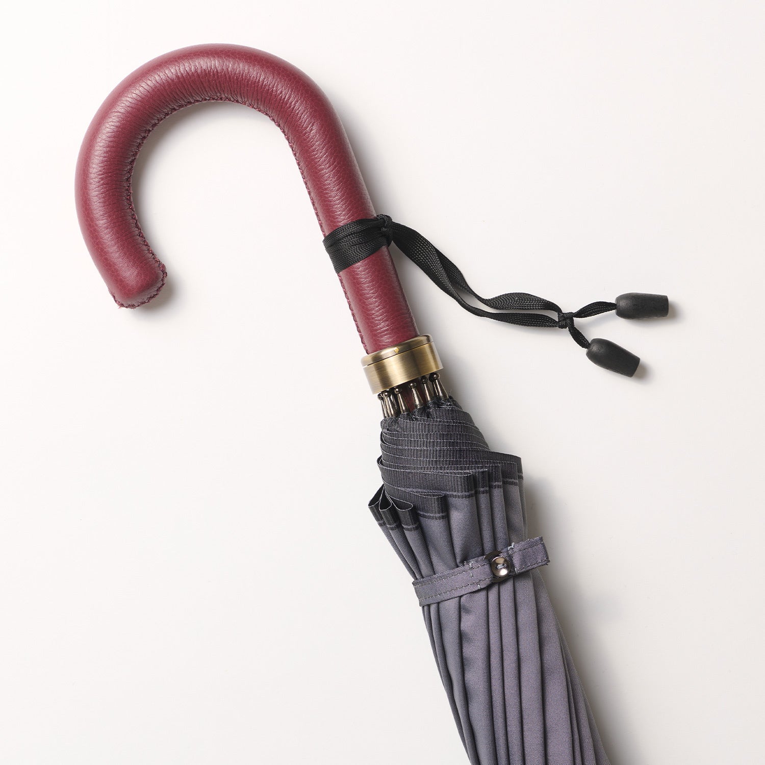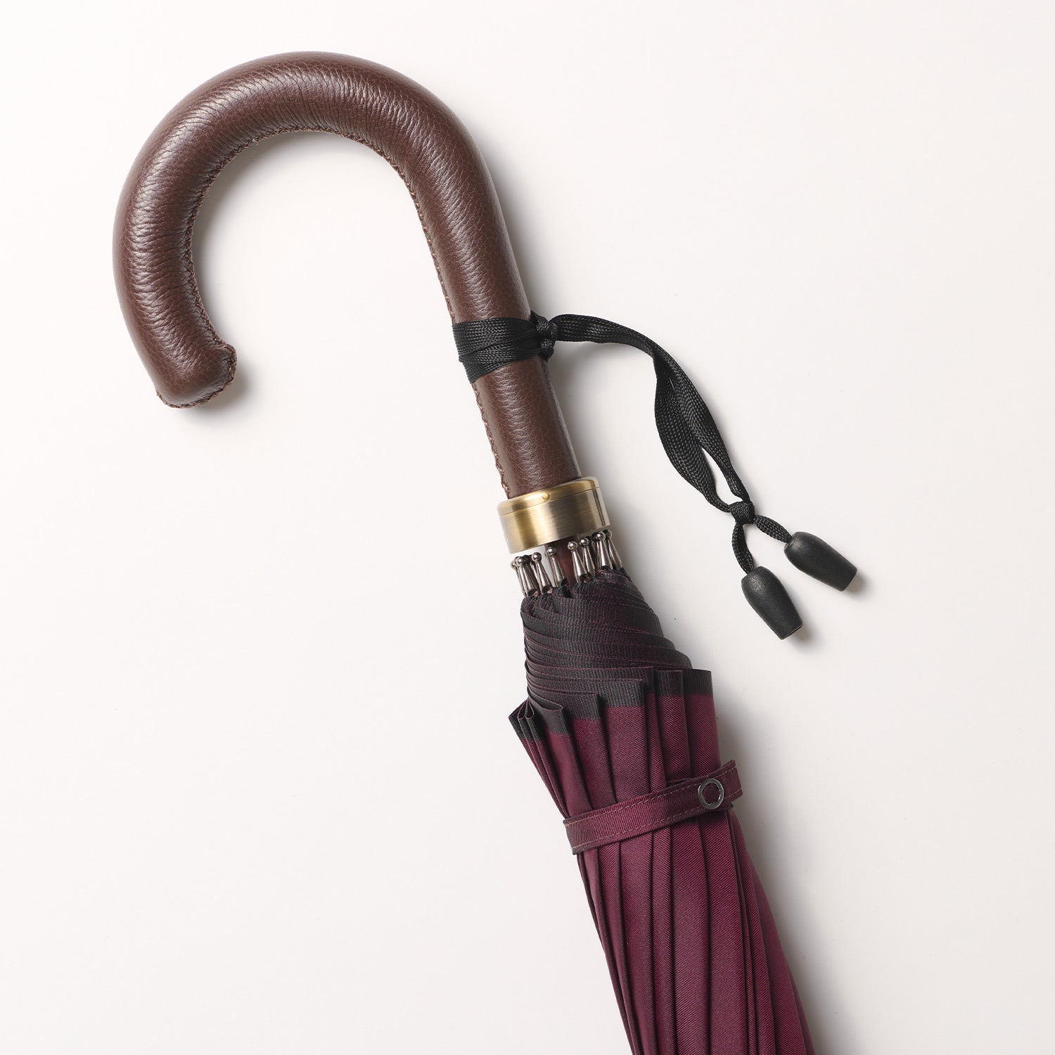 傘の手元を華やかに演出するボルドーと深みのある色合いが上品な表情のダークブラウンは、前原光榮商店の傘をより格調高いグレード感を引き立ててくれます。お好みの傘と組み合わせてご注文いただければ、愛着ある一本に仕上げてお届けいたします。