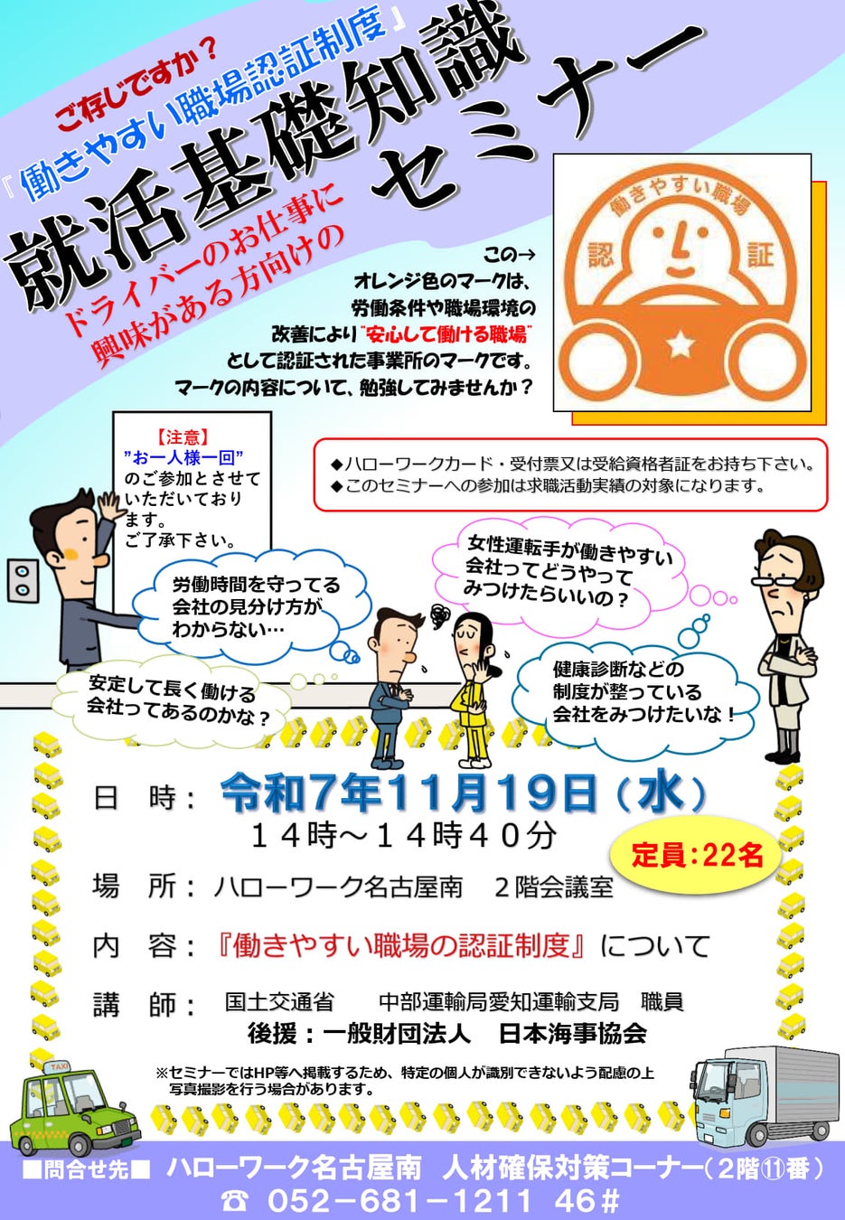 今後のセミナー開催告知など最新の情報については、ハローワーク名古屋南のウェブサイトよりご確認ください。
