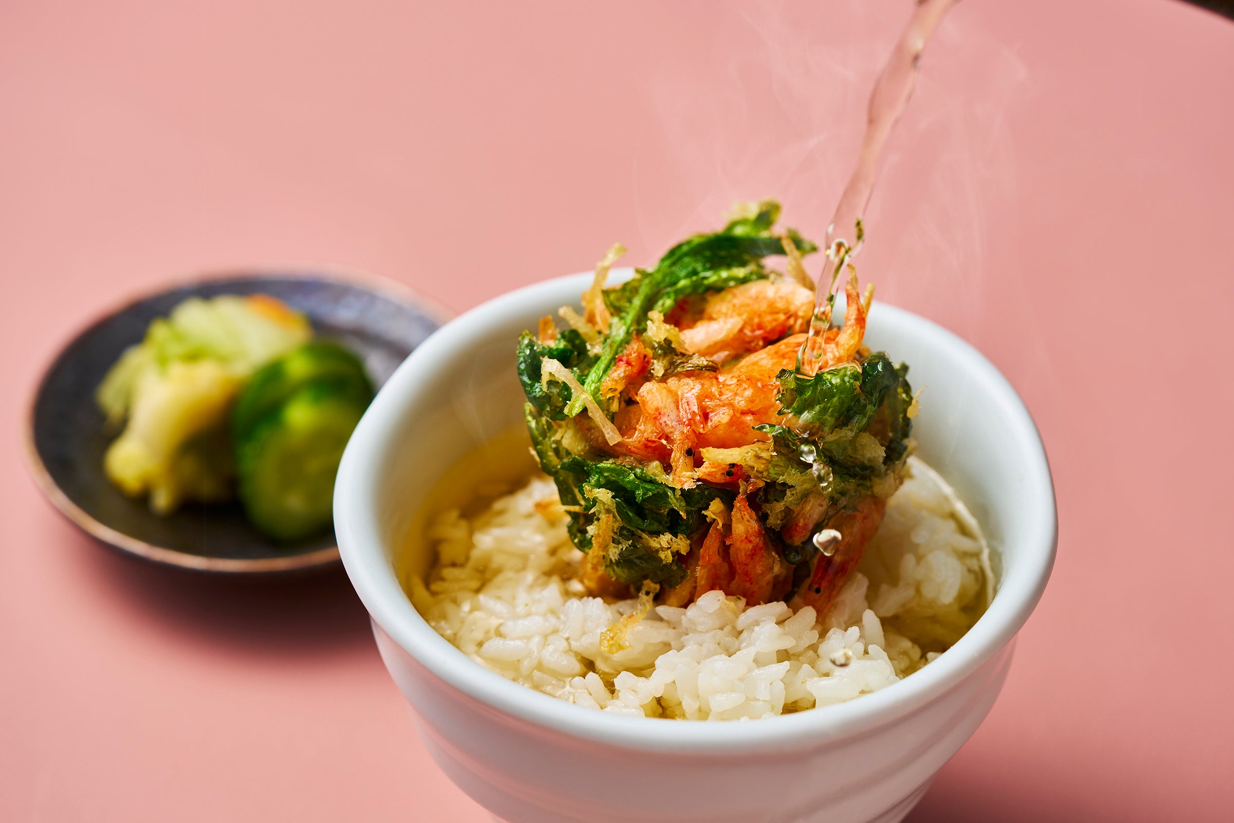 お食事:桜海老かき揚げと静岡茶の天茶漬け・香の物