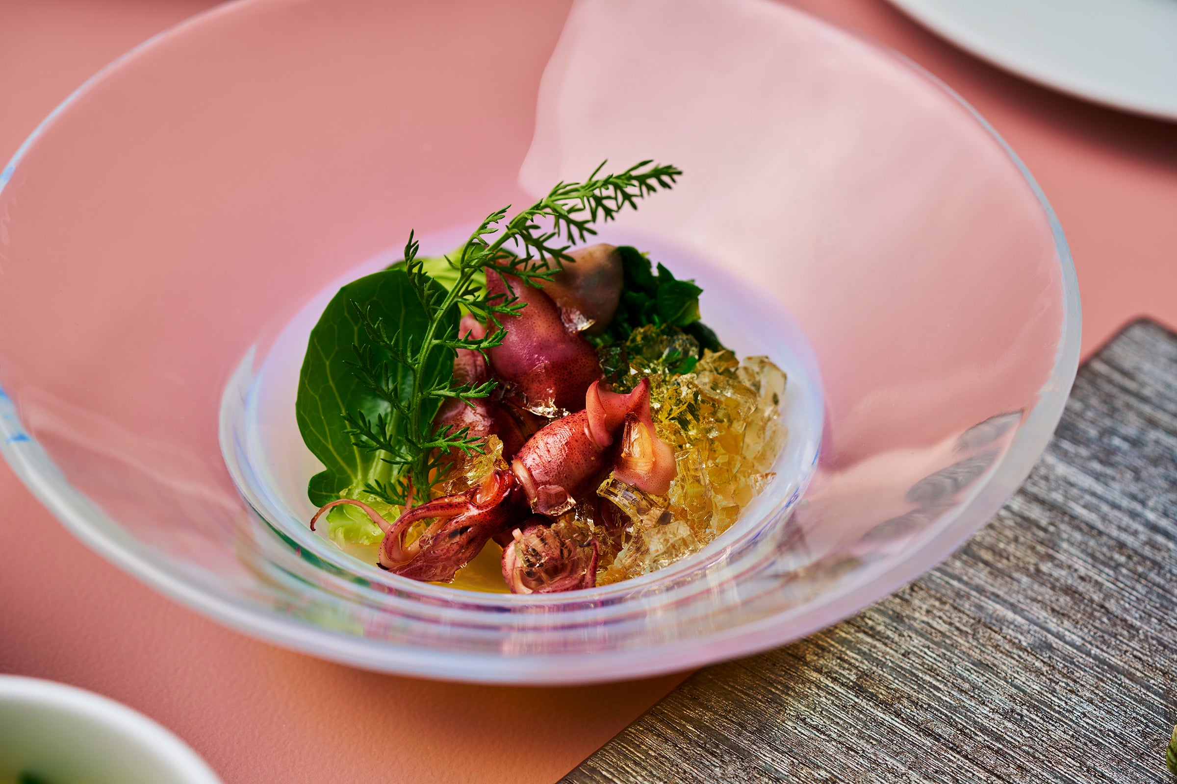 本コースは、春に旬を迎える食材を中心に、静岡の恵みを贅沢に取り入れたメニューをご用意いたしました。繊細な味わいが魅力の春子鯛は、伊豆・松崎町の桜葉で包んだ小袖寿司として仕立て、春らしい香りとともにお楽しみいただけます。また、日本では駿河湾でしか水揚げされない由比産の桜海老を茶碗蒸しや真丈、かき揚げ天茶漬けなど、多彩な調理法で表現し、素材本来の味を引き出しました。さらに、静岡のブランド牛「ダイヤモンド富士牛」の炙り焼きや、県内産の春野菜を組み合わせた一皿など、海の幸から山の恵みまで、旬の香りと彩りを五感で味わう和会席コースです。