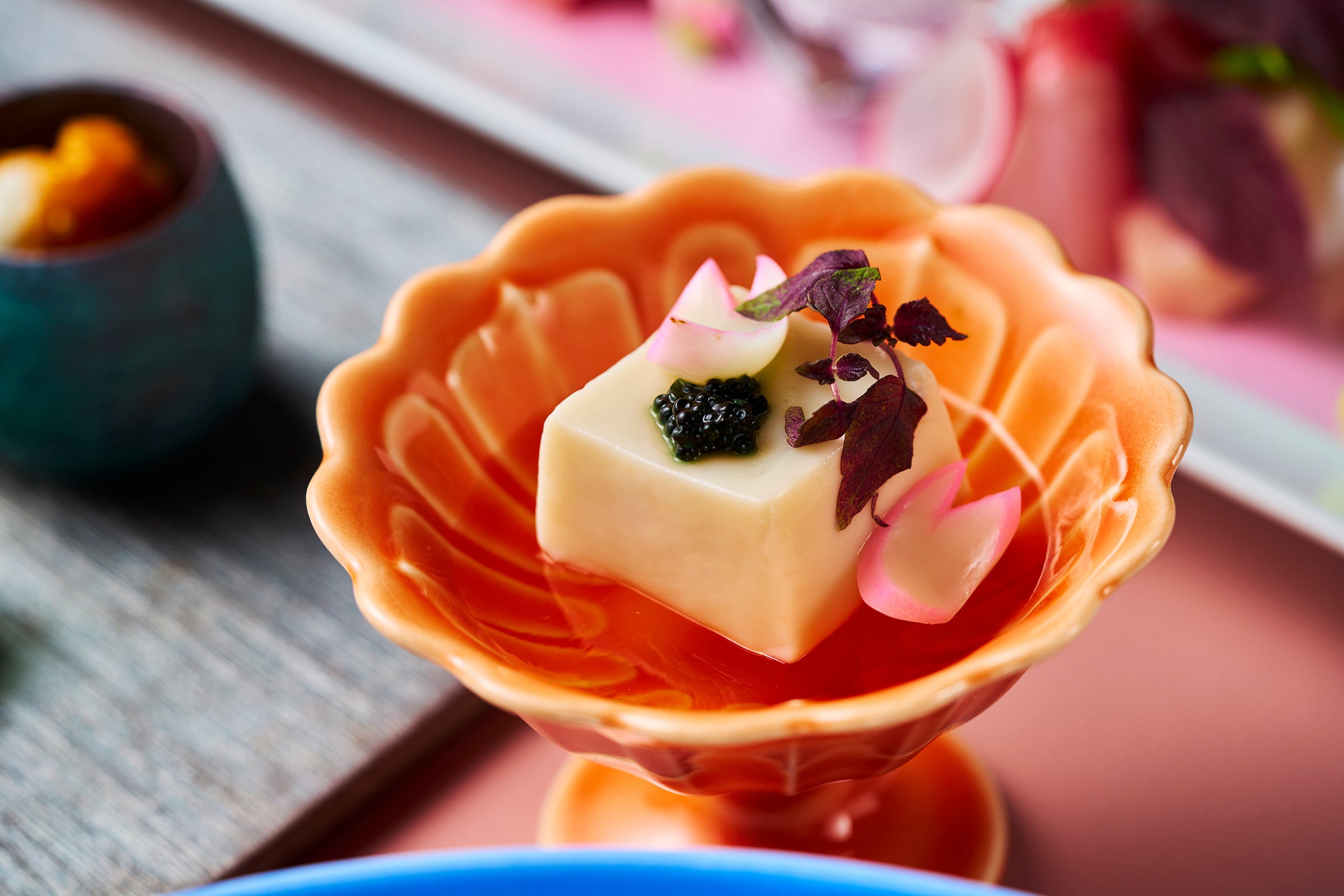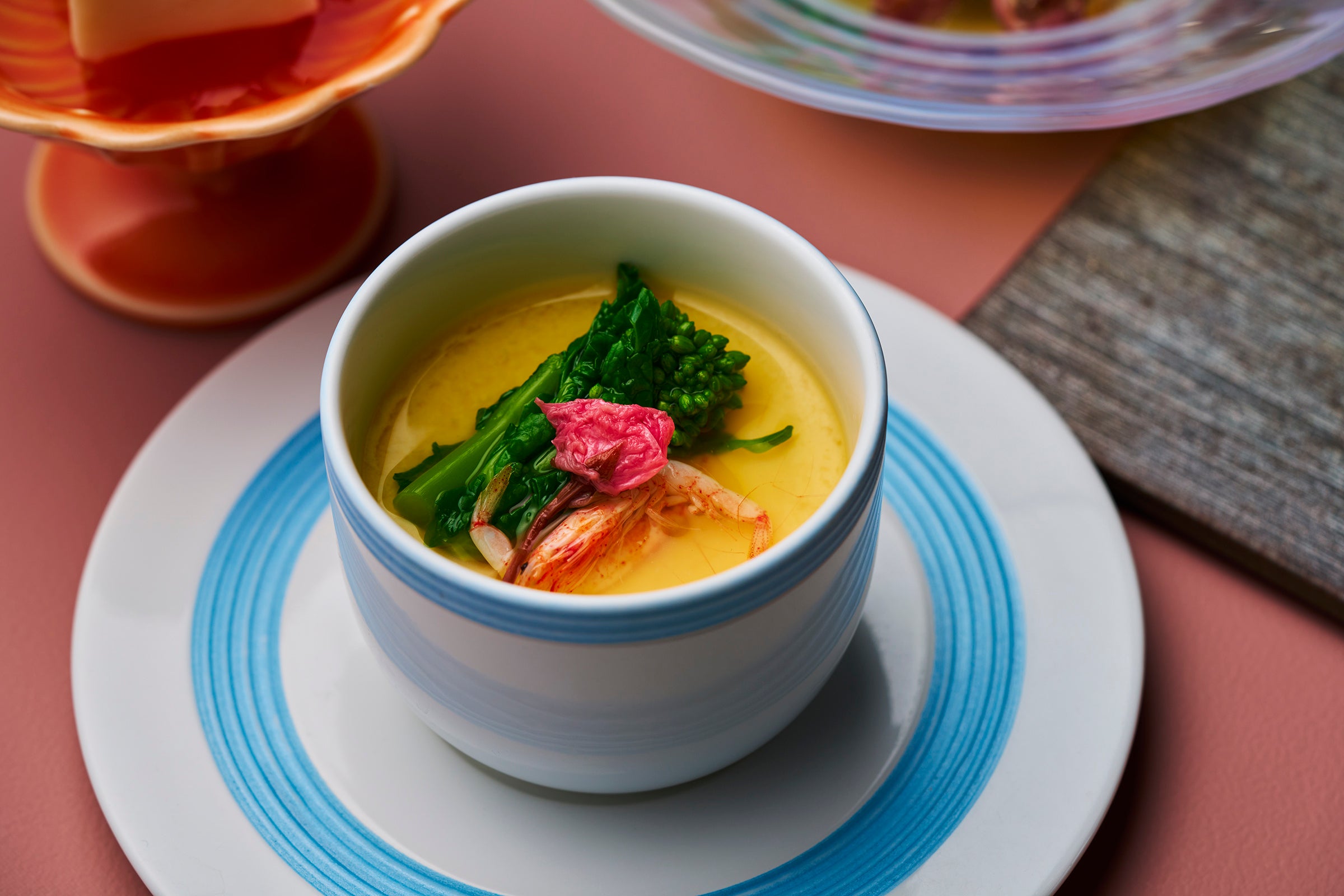 一の膳:桜海老と浅利の桜花茶碗蒸し/蛍烏賊と芹の和え物