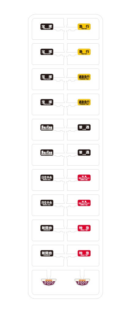 さらに、増結セットには前面表示部パーツを同梱し、宝塚線の登場時を象徴する「デビューヘッドマーク」も付属品として封入しています。