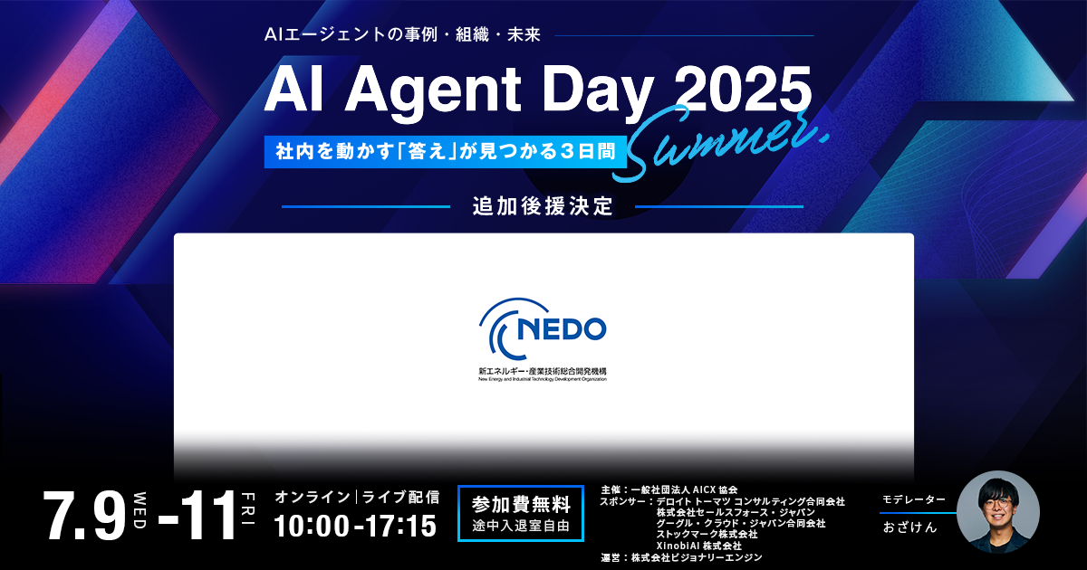 「AI Agent Day 2025 Summer」に、NEDOの後援が追加で決定