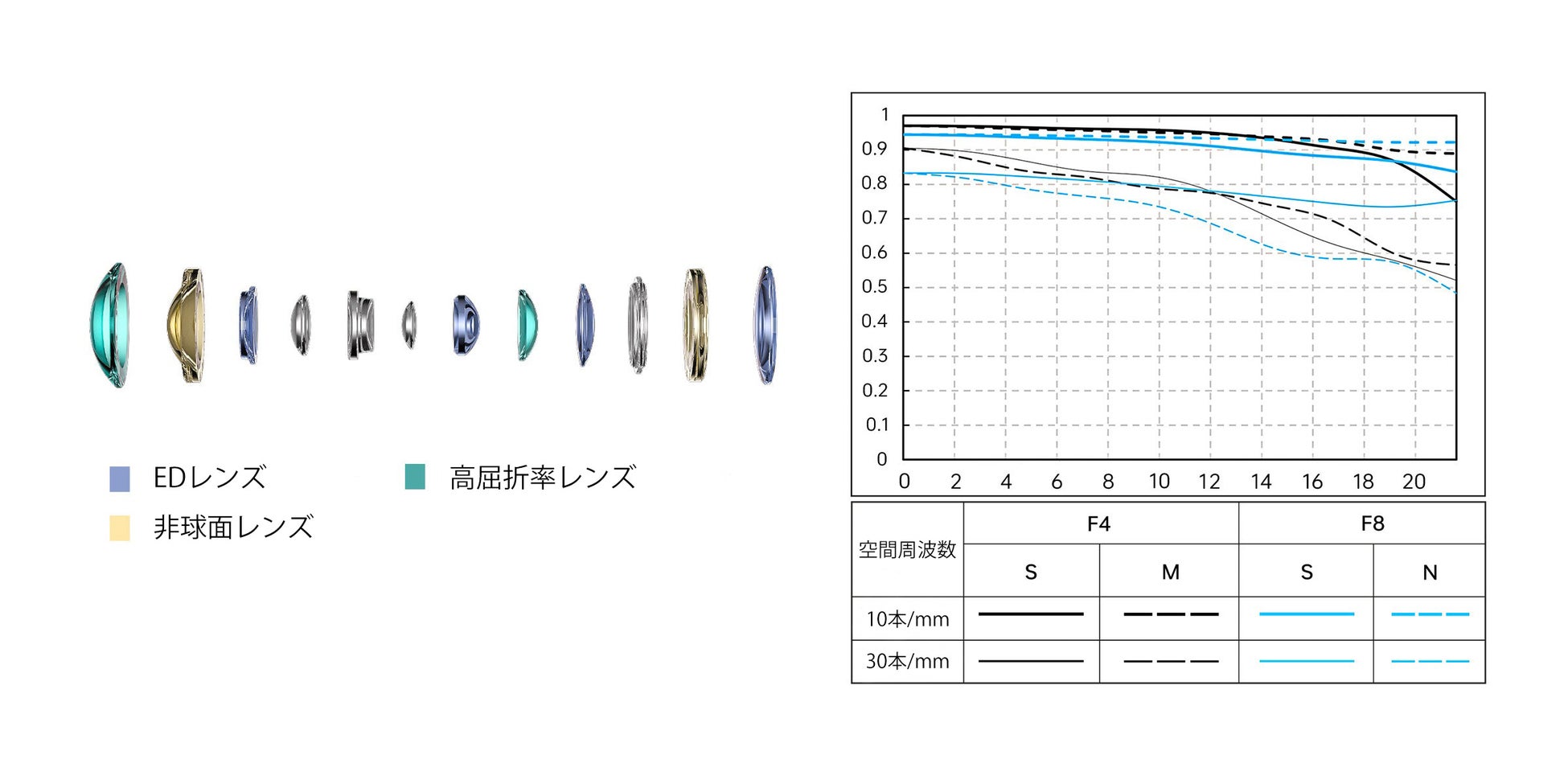 ・9群12枚構成(ED×4、高屈折率×2、非球面×2)による高解像・低歪曲設計