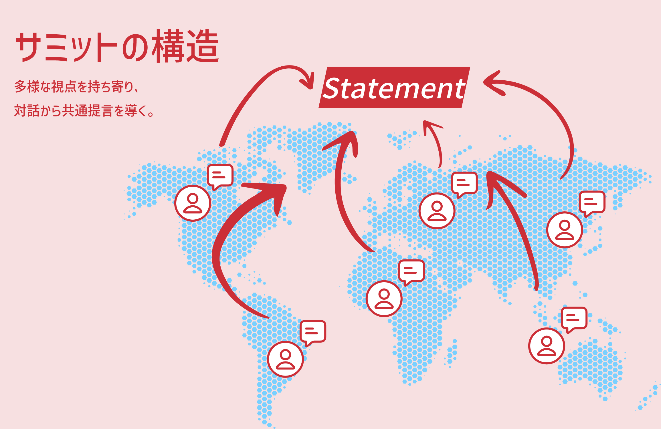 そして、サミットの場で対話を重ねながら方向性をすり合わせ、最終的に、世界としてどう進むべきかを共通の提言(Statement)として社会に示します。