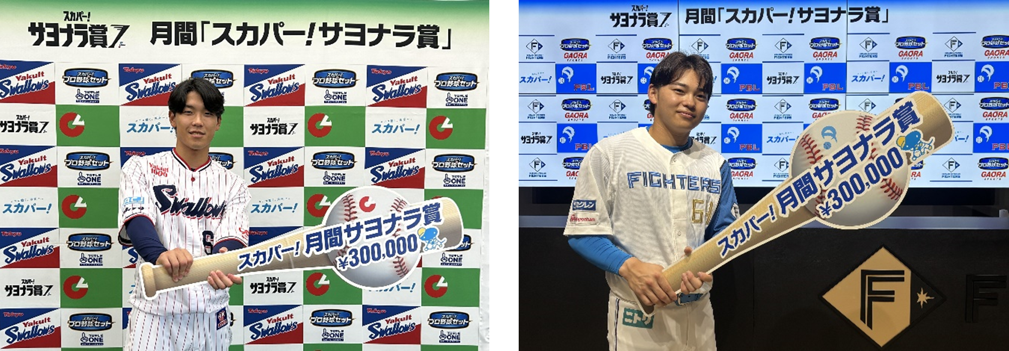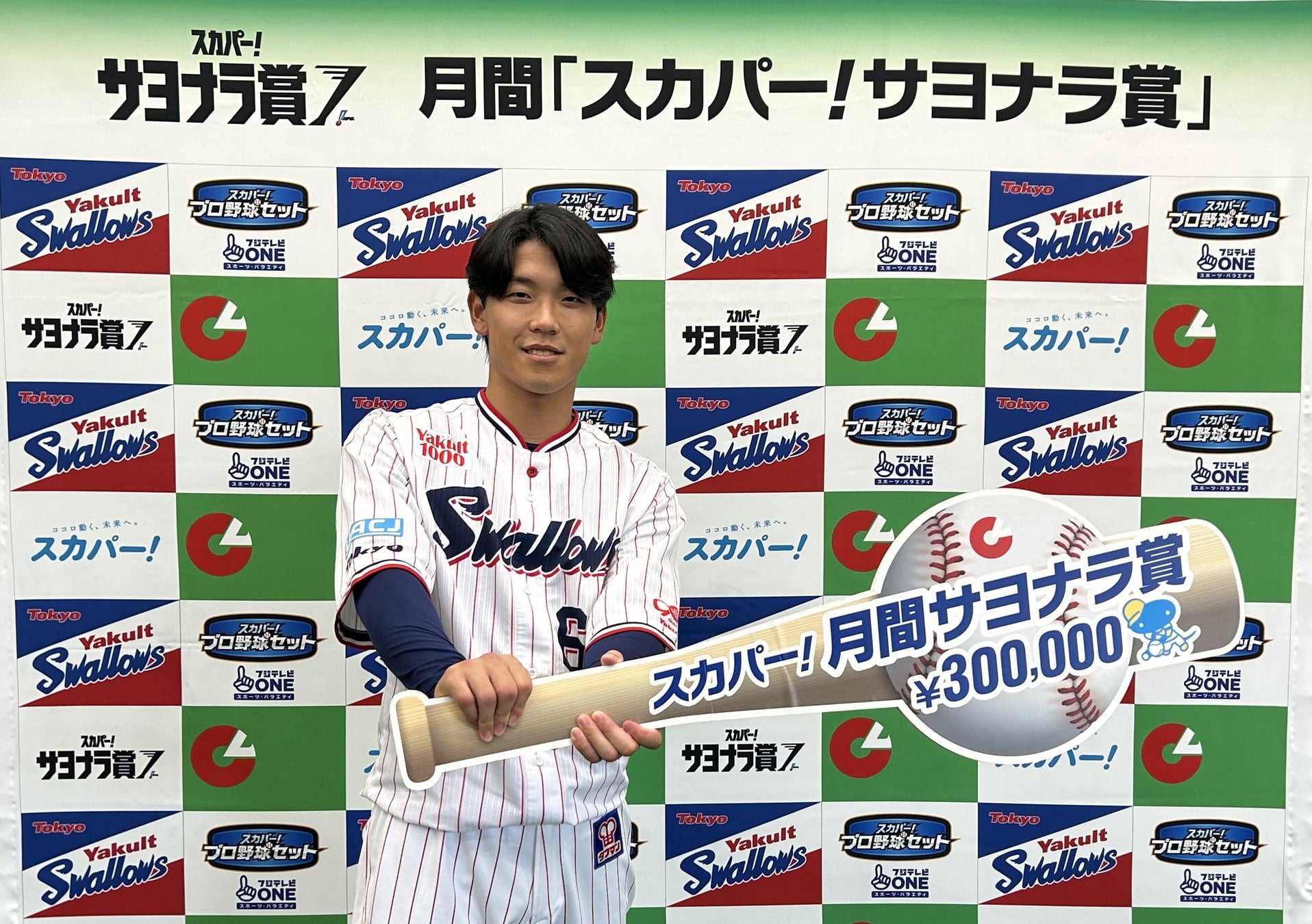 7月16日(水)、月間「スカパー! サヨナラ賞」6月度の受賞選手に、セ・リーグは武岡龍世選手(東京ヤクルトスワローズ)、パ・リーグは田宮裕涼選手(北海道日本ハムファイターズ)が発表され、各会場で表彰式が行われました。