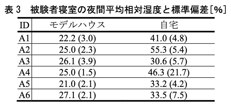 方法 :各被験者は冬季のモデルハウスと自宅寝室でそれぞれ3夜連続で計測を実施し、初日のデータを除いた2日目と3日目のデータを分析に利用