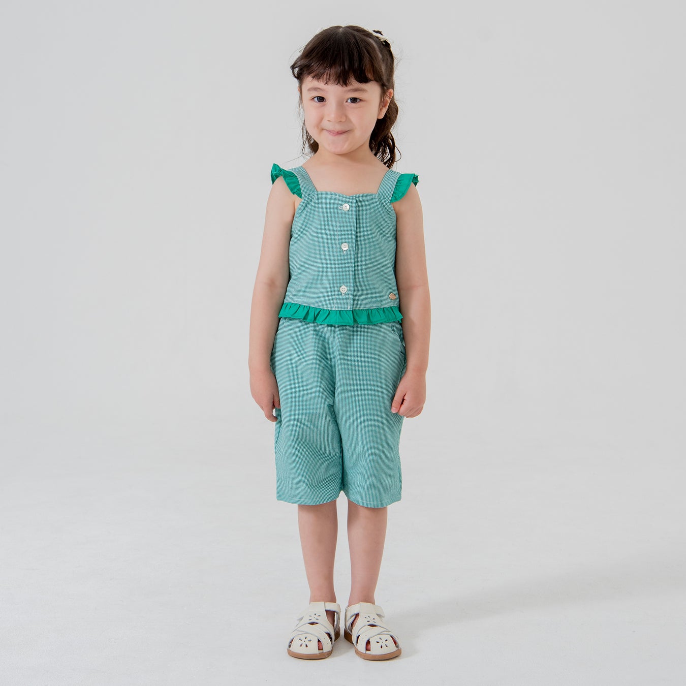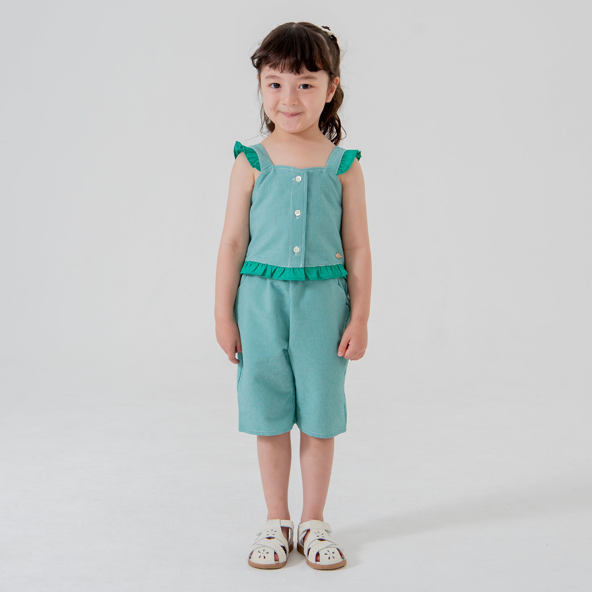 ■アイテム名:【プレミアム】【セットアップ】サッカーストレッチミニギンガムビスチェトップス&パンツ