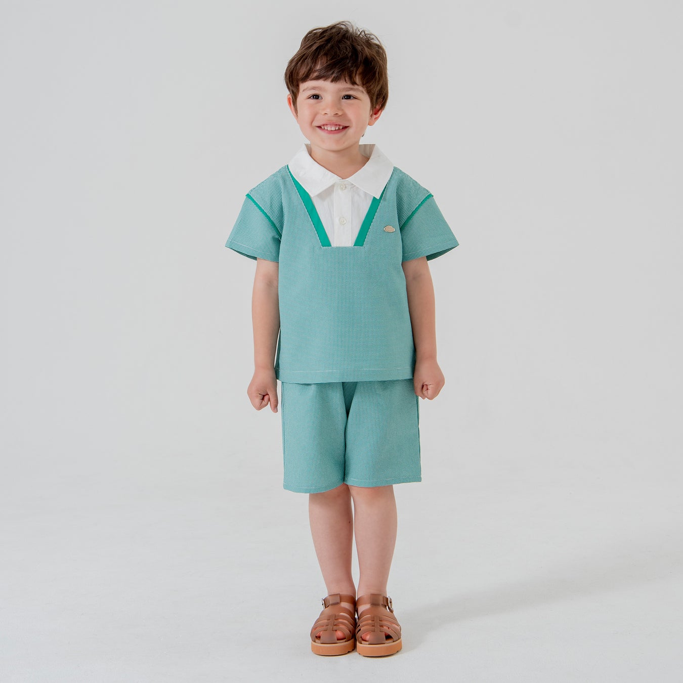 ■アイテム名:【プレミアム】【セットアップ】サッカーストレッチミニギンガムトップス&パンツ