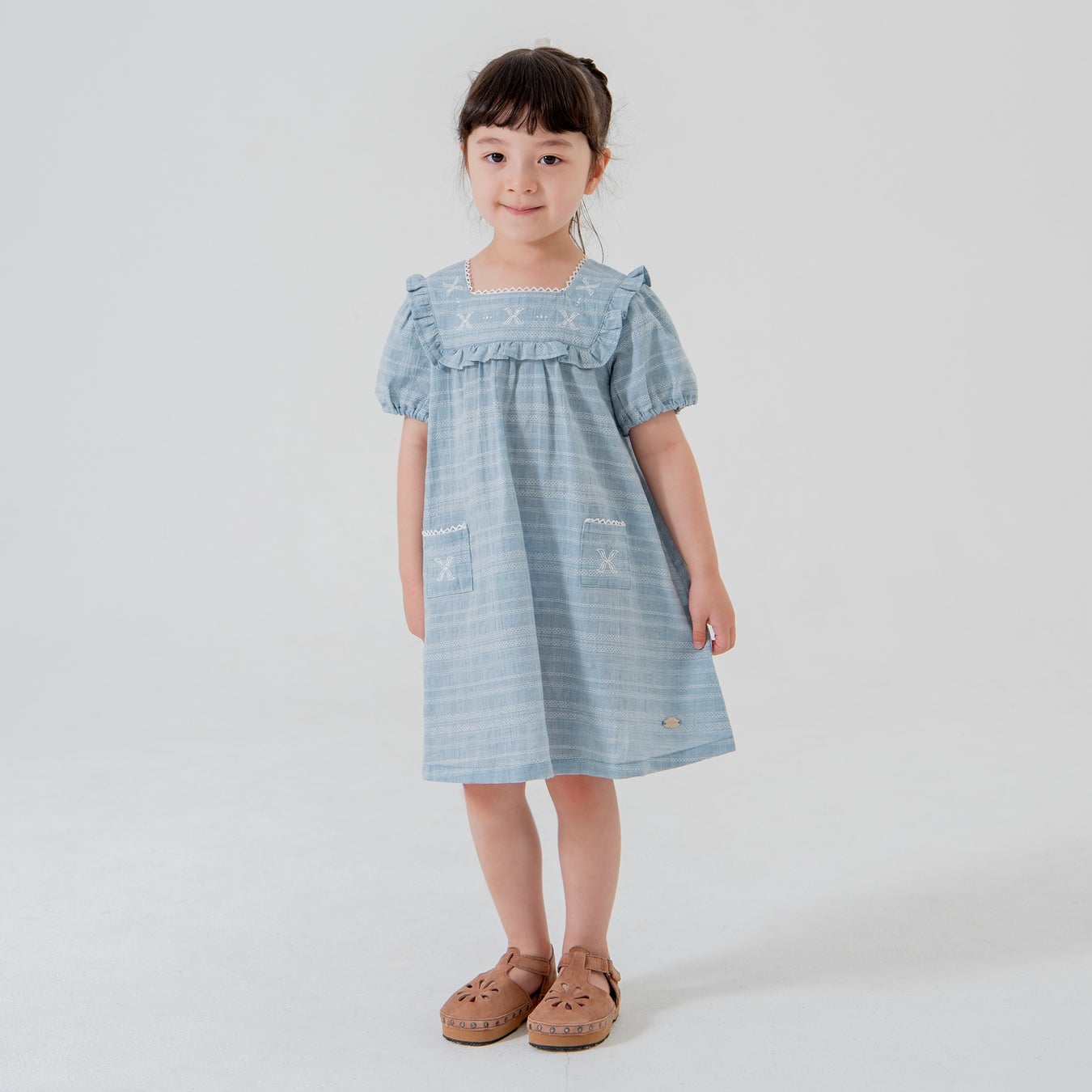 ■アイテム名:【プレミアム】フリルカラーローンプリント半袖ワンピース