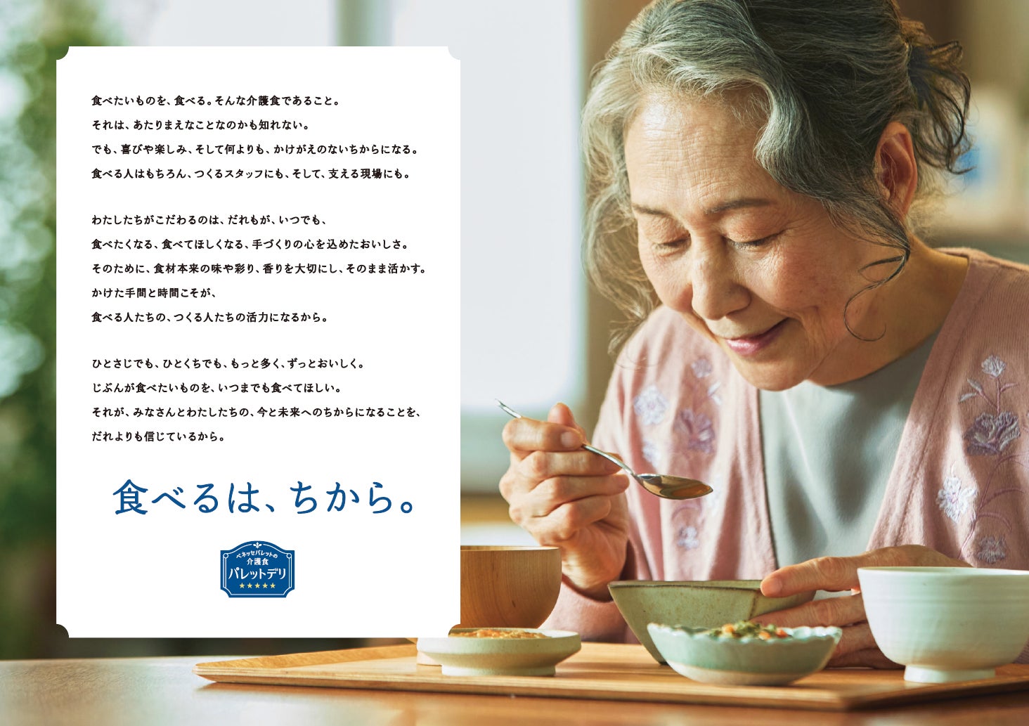ベネッセパレットの介護食、新ブランドメッセージ「食べるは、ちから。」を制定 「こだわりの五ツ星製法」で提供する『パレットデリ』のウェブサイトをリリース