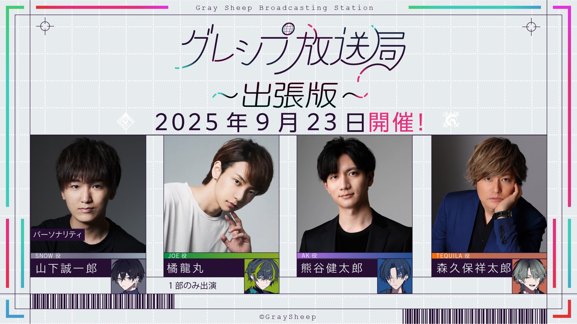 山下誠一郎、熊谷健太郎に加え、あらたに橘龍丸、森久保祥太郎の登壇が決定!Gray Sheep公開イベント『グレシプ放送局出張版』7月23日からチケット申し込み開始!