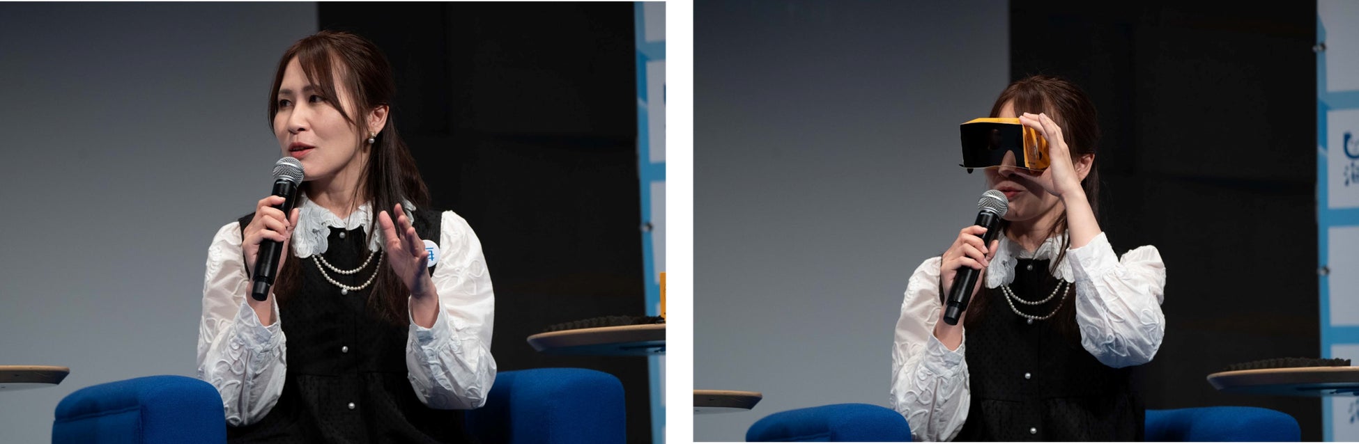 子どもの事故予防の専門家として子どもに届く伝え方を研究している、大阪大学大学院 特任研究員の岡さんは「子どもは経験が浅いので、自分の見たものや感じたことが全てです」と、実際に子どもの視界を大人が体験できるグッズ「チャイルドビジョン」を紹介し、「『今が全て自分が中心』の世界で生きている子どもの視野は大人の視野の7割程度と言われており、大人は子どものその特性を理解して、声かけをしてあげるというのが非常に重要です」と話しました。やみくもに大人が「気を付けなさい」と言うよりも具体的に「あの部分は深いから、行っていいのはここまで」と教えながら子どもが体験を重ねていくことで、“危険に気づく力”が育っていくとのことで、「重大事故にならないよう安全を確保した上で、体験させながら教えるというのが大事だと思います」と話しました。