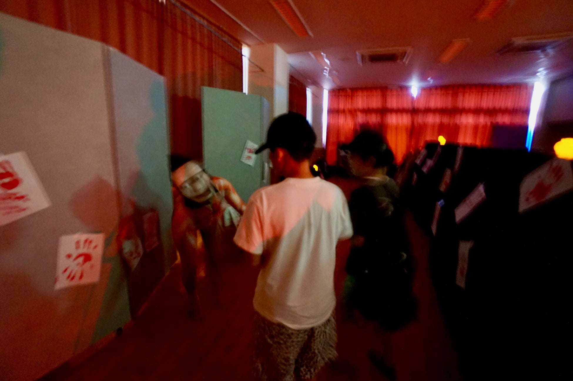 この日は商店街内やその周辺でもイベントが行われていました。「後免町防災コミュニティセンター」で行われていたのは、南国市子ども会連合会のメンバーが企画・製作した「マイルドきもだめし」。