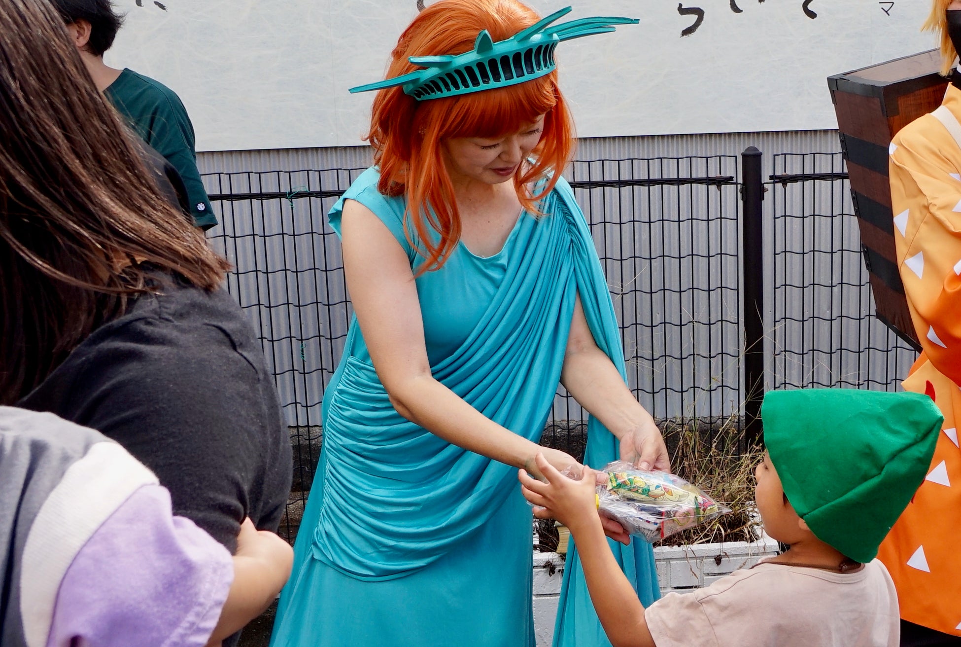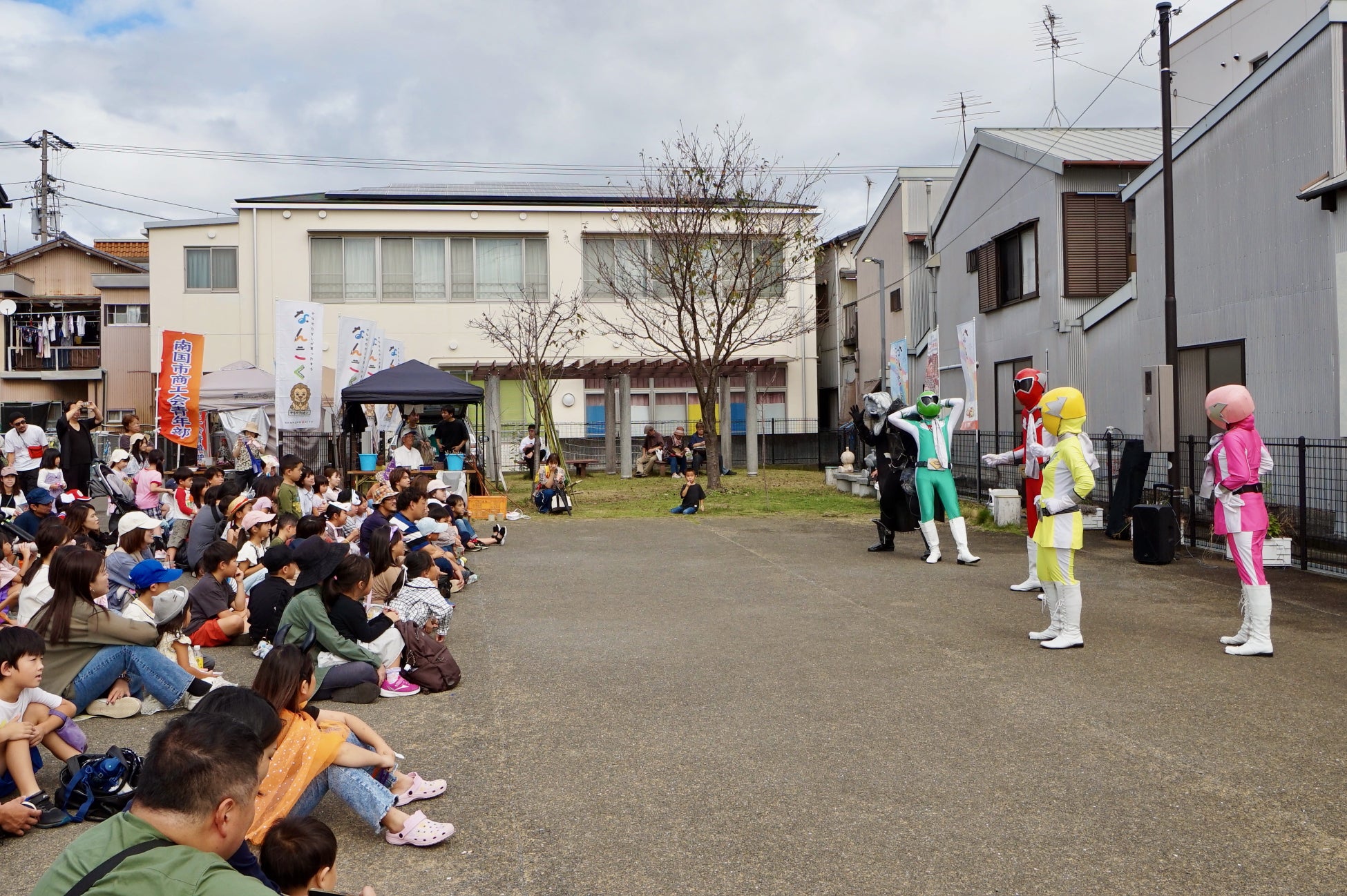 さらに、この日はハロウィンが近いということでコスプレイヤーから子ども達へのお菓子配りが行われたほか、南国市商工会女性部によるやなせたかしさん作詞・作曲の「生姜音頭」の披露や、後免町のヒーロー・ごめん戦隊ゴメンジャーnextのショーも上演。子ども達が商店街を駆けまわり、歌ったり踊ったり、大きな声で笑ったり、心から楽しんでいる様子が印象的でした。