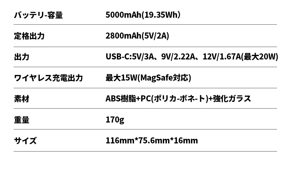5000mAhのバッテリーを搭載し、1日中の外出や、手ぶらで出かける時でも活躍します。