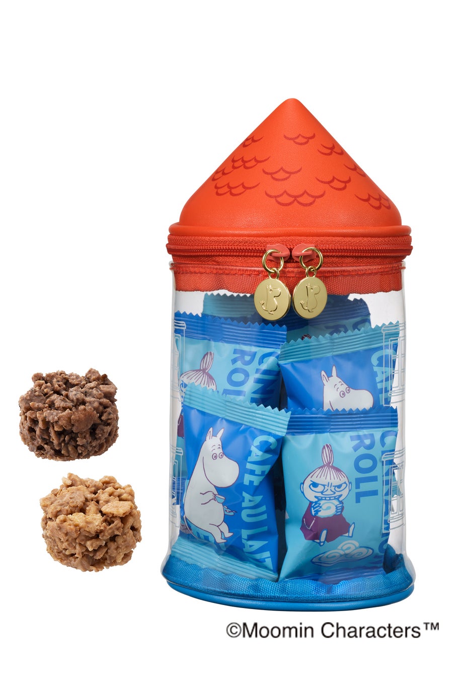 取り外し可能なストラップがついた、「吊るせる」「飾れる」2WAY仕様。ムーミンやしきをイメージしたポーチは中に入れるもので印象が変わり様々な楽しみ方が広がります。中にはカフェオレとシナモンロールをイメージしたクランチチョコレート入り。