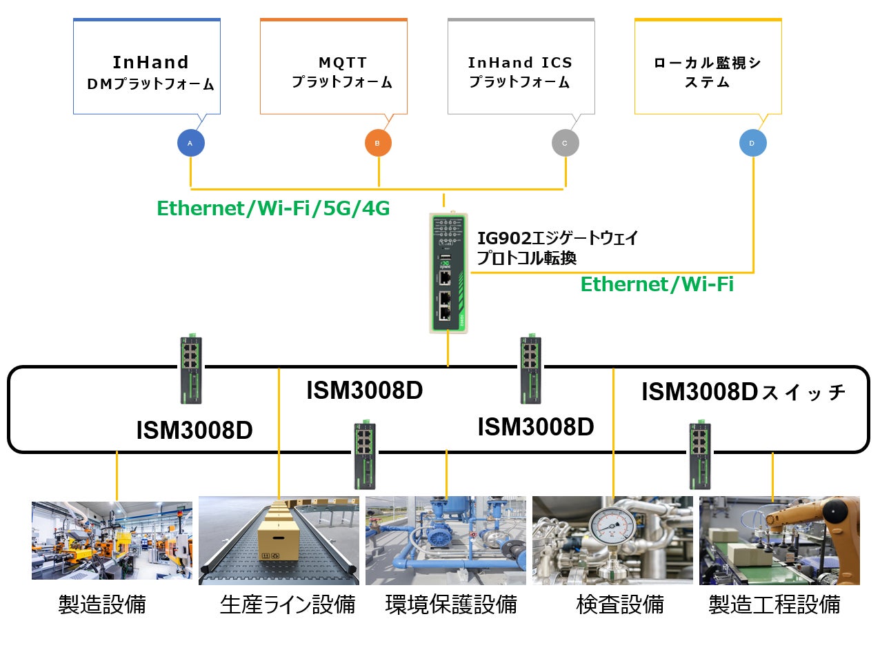 その設備健康管理システムは、産業設備の全ライフサイクルにわたる管理とメンテナンスを実施し、運転監視、故障診断、健康状態評価、メンテナンス記録、備品トレーサビリティなどを含みます。これにより、設備の安定性と安全性を向上させ、企業の運用コストを削減できます。現場設備側では、InHandの産業用スイッチおよびエッジ・ゲートウェイを活用して、機器の多源異構データを収集するとともに、ローカルでデータを前処理し、機器のデジタル化を実現しています。