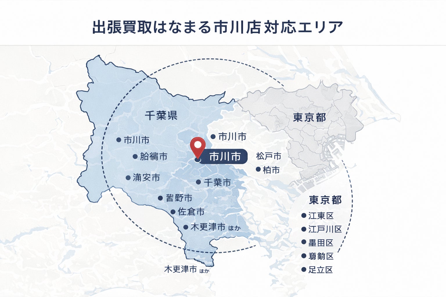 出張買取はなまる市川店では、以下のエリアを中心に出張対応しています。