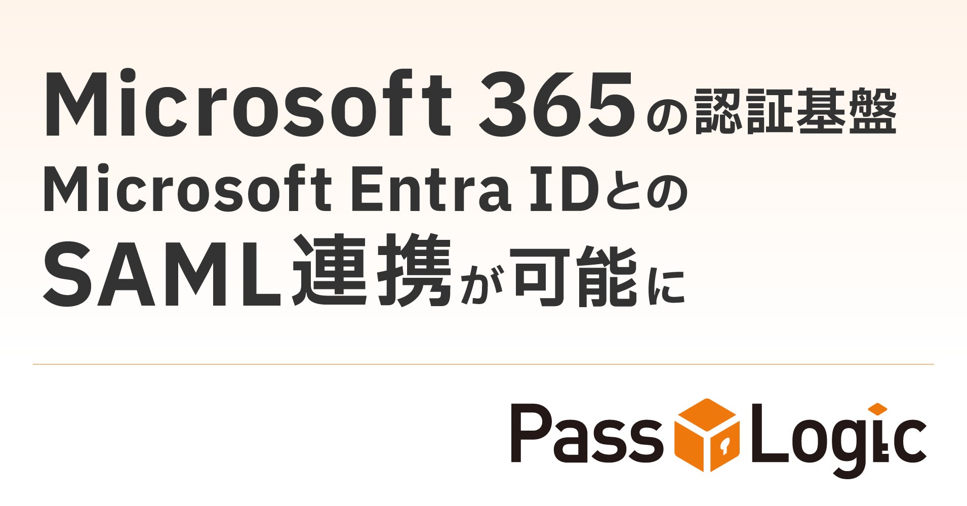 独自技術で純国産セキュリティ製品を開発・販売するパスロジ株式会社(東証TOKYO PRO Market上場:証券コード4426、本社:東京都千代田区、代表取締役社長:小川秀治。以下、パスロジ)は、パスロジが開発・提供する多要素認証ソリューション「PassLogic(パスロジック)」の最新バージョンと、Microsoft Corporationが提供するクラウド型統合ビジネスプラットフォーム「Microsoft 365」の認証基盤である「Microsoft Entra ID」とのSAML連携検証が完了したことをお知らせいたします。