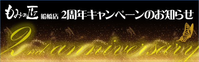 リラクゼーションサロン もみの匠 船橋店は京成船橋駅・船橋駅が最寄りの好アクセス!お出かけやお仕事の合間などに皆様にご利用いただいておりました、もみの匠船橋店が2周年を迎えました。