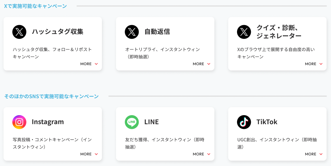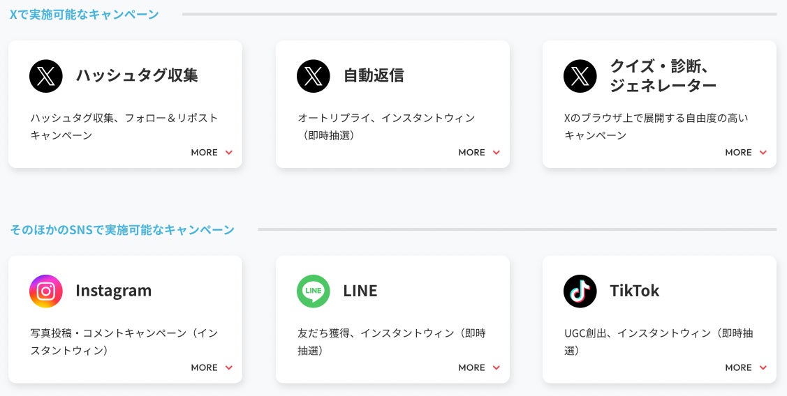 これまで提供してきたX同様に、Instagram、TikTok、LINEといった様々なソーシャルメディアを横断的にカバーできるキャンペーンサービスとしてリニューアルいたします
