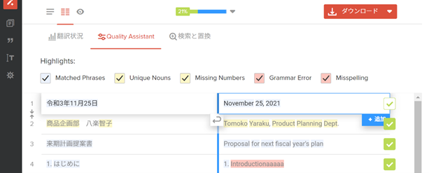 自動翻訳の精度は近年格段に進化しましたが、依然として固有名詞や数字の間違い、訳抜け、文法・スペルミスもあり、自動翻訳の結果をそのままビジネスに使用すると、重大な問題に発展する場合があります。